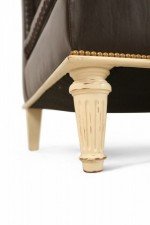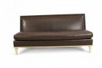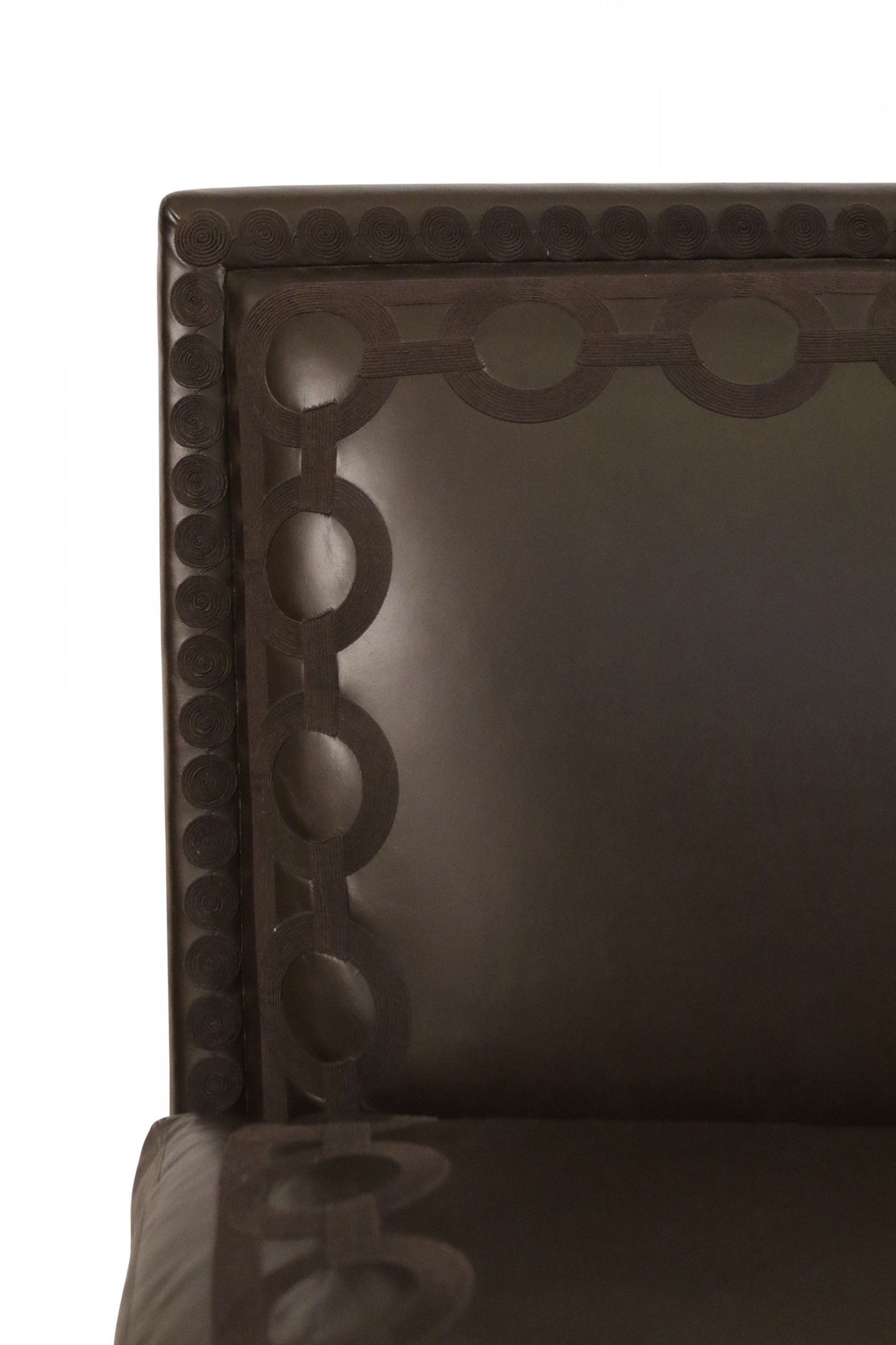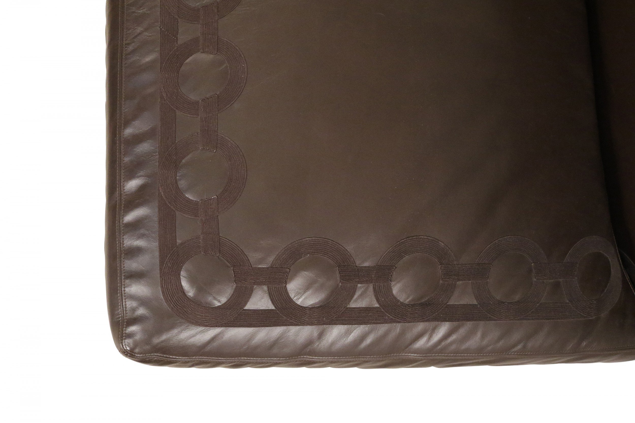 Contemporary Embroidered Brown Leather and Painted Wood Sofa