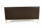 Contemporary brown leather 3-seat sofa with embroidered circular trim along the seat and back and carved white painted wooden legs.