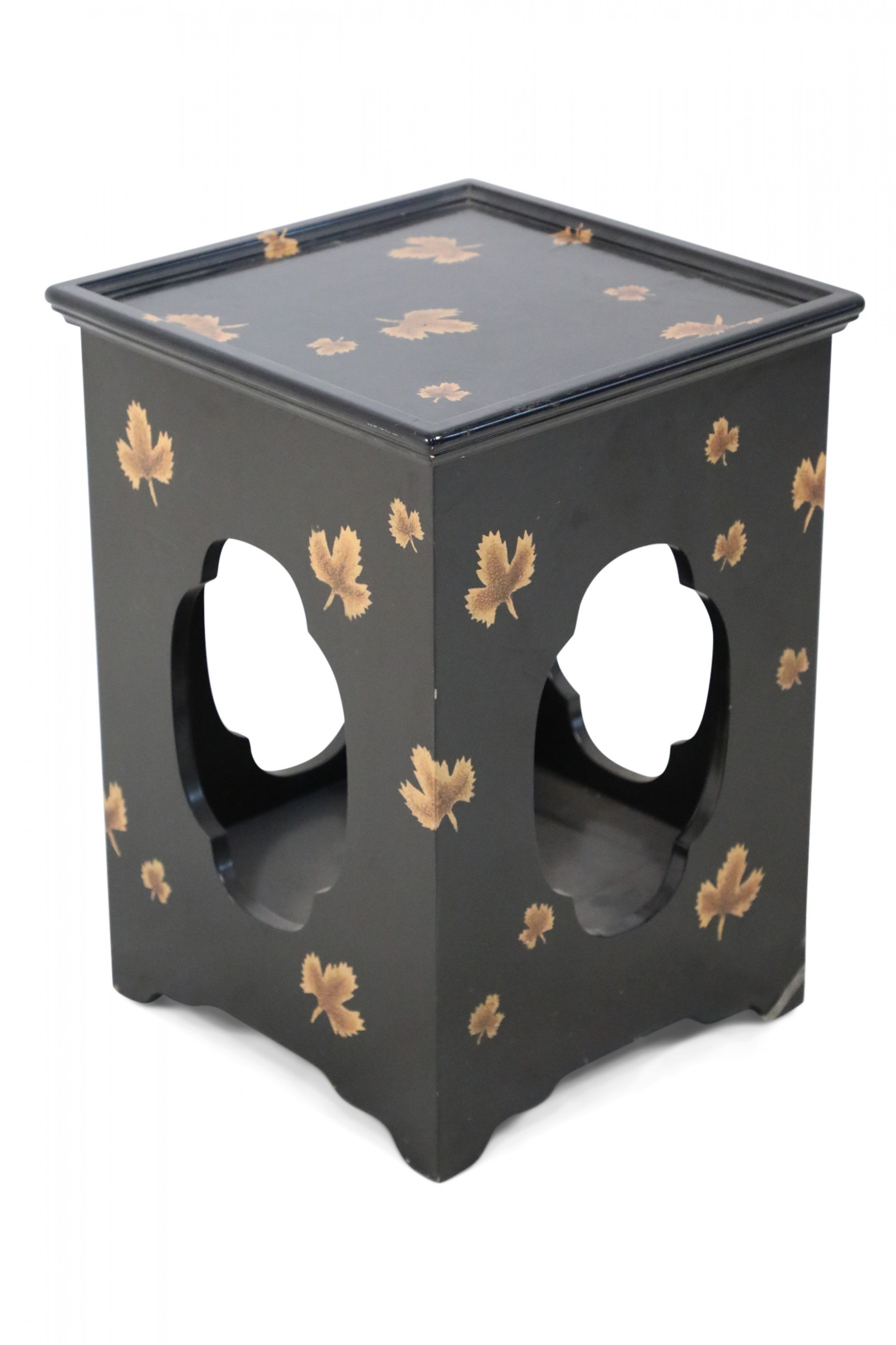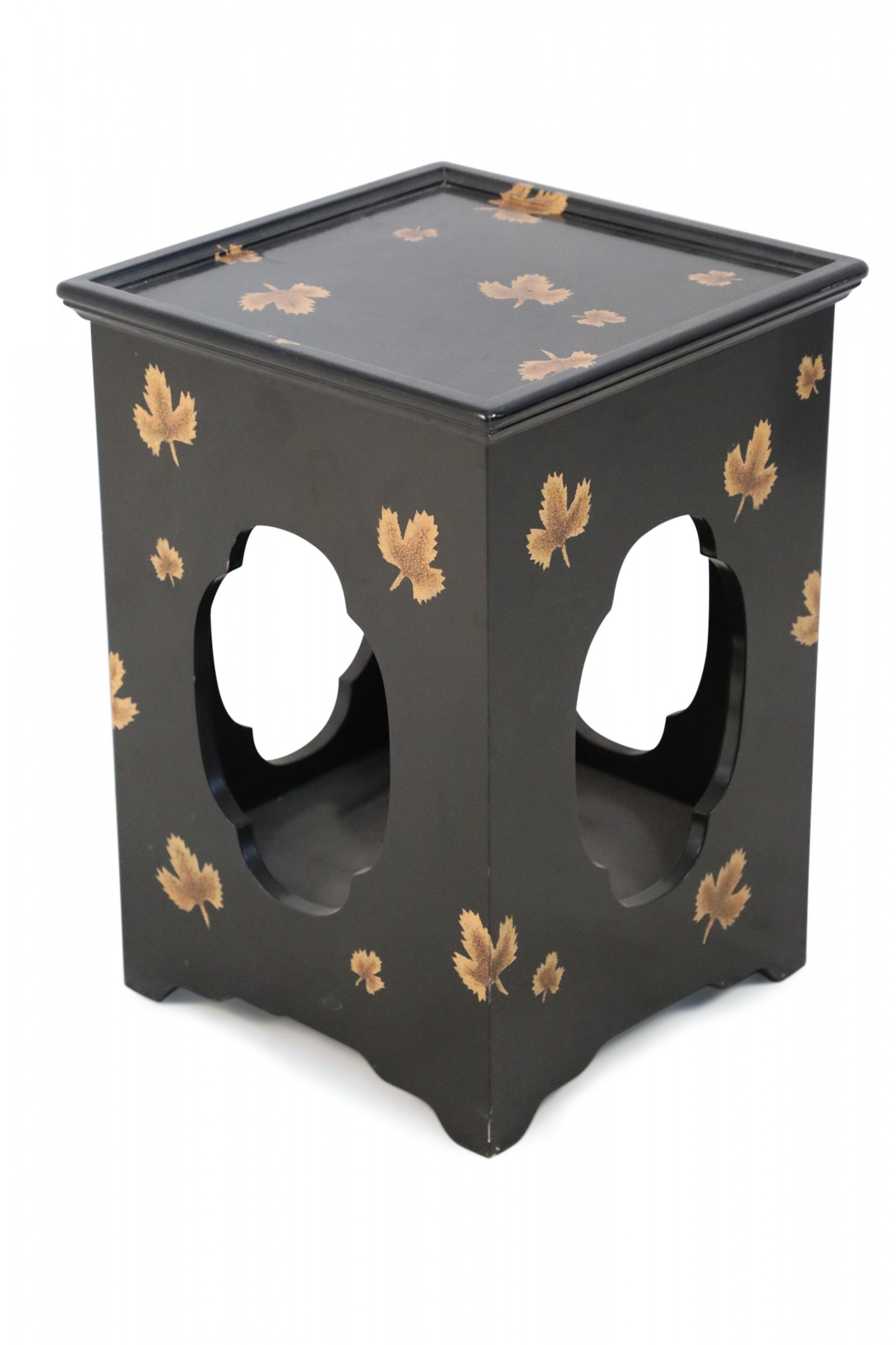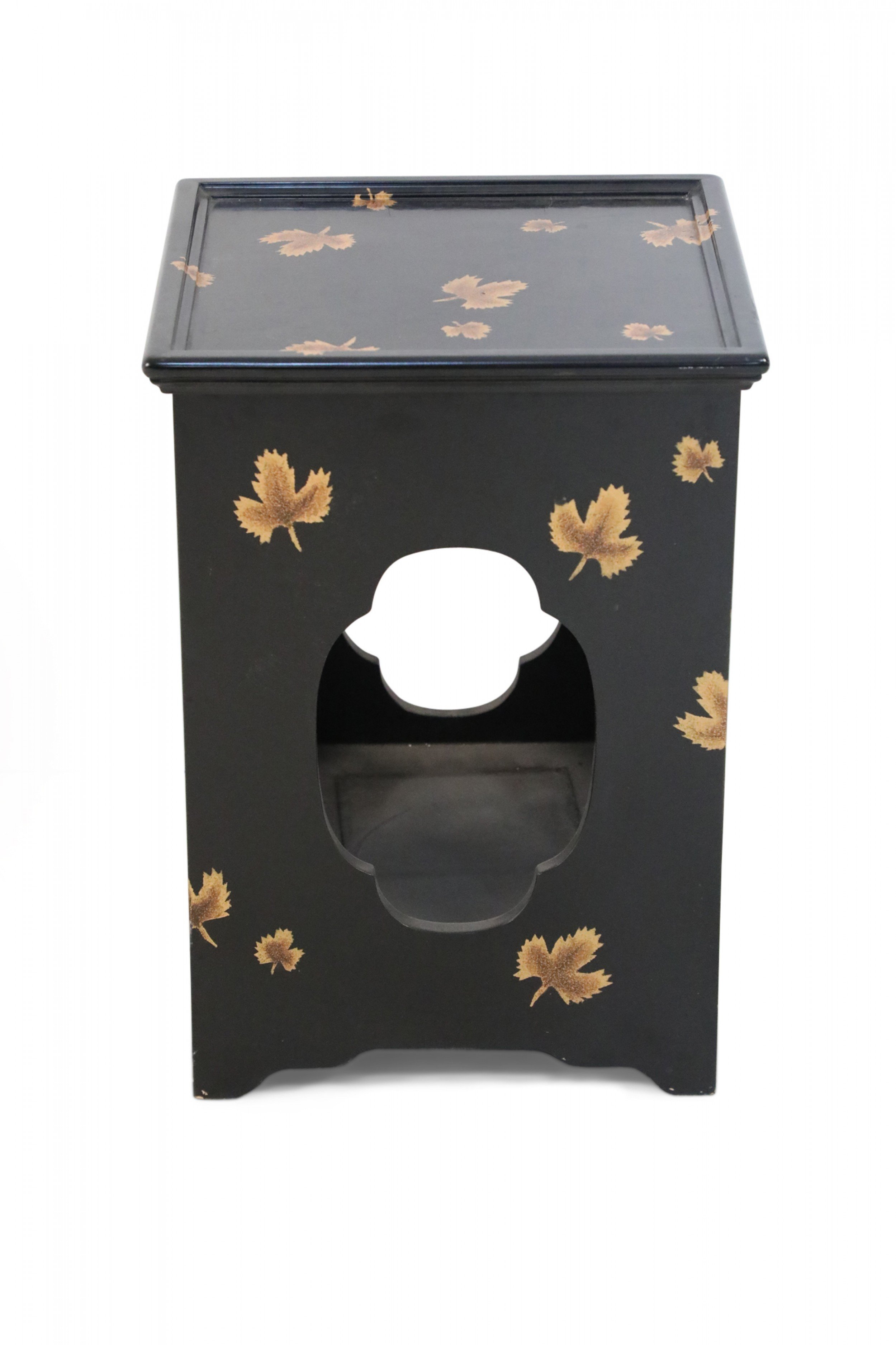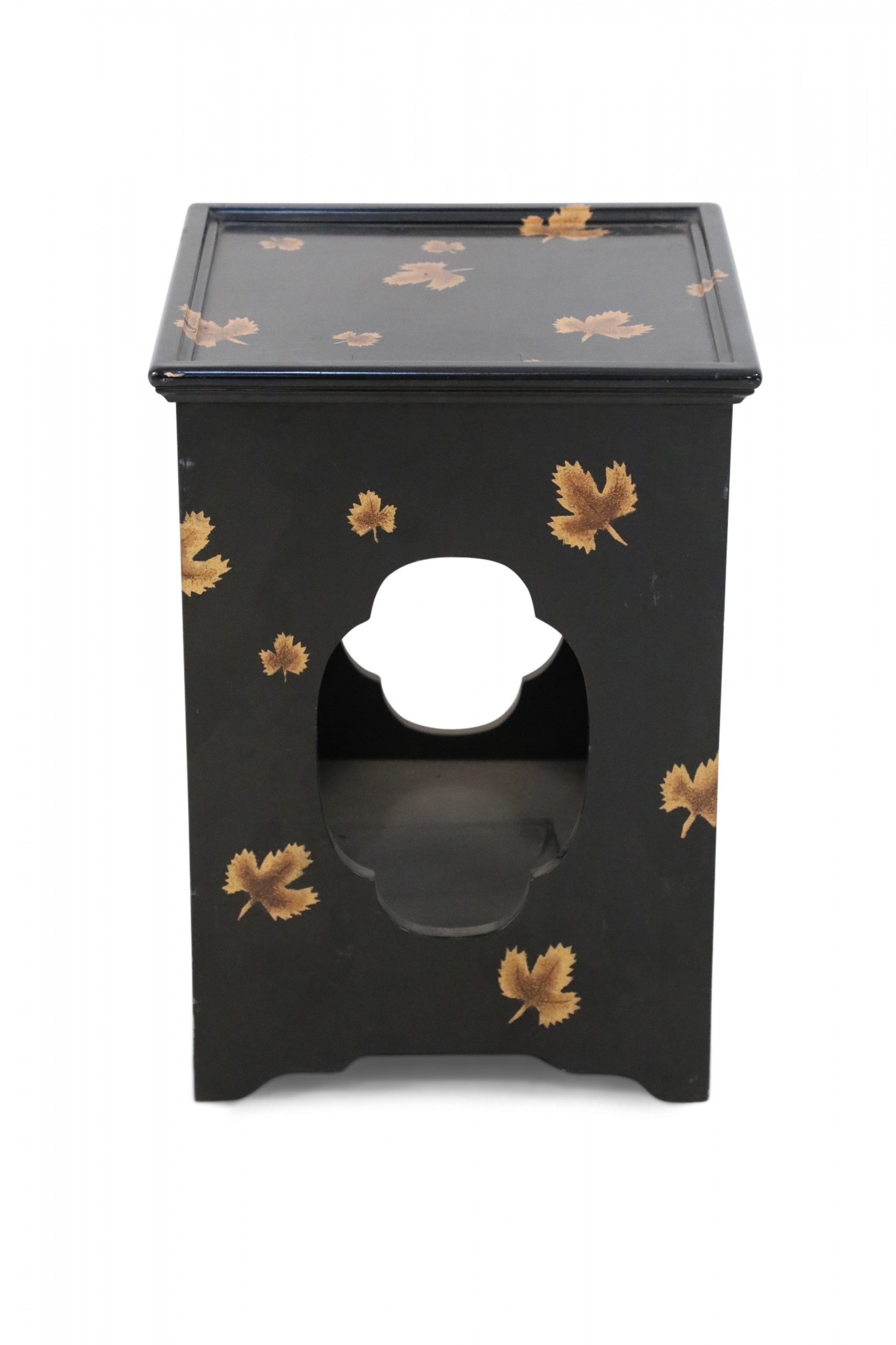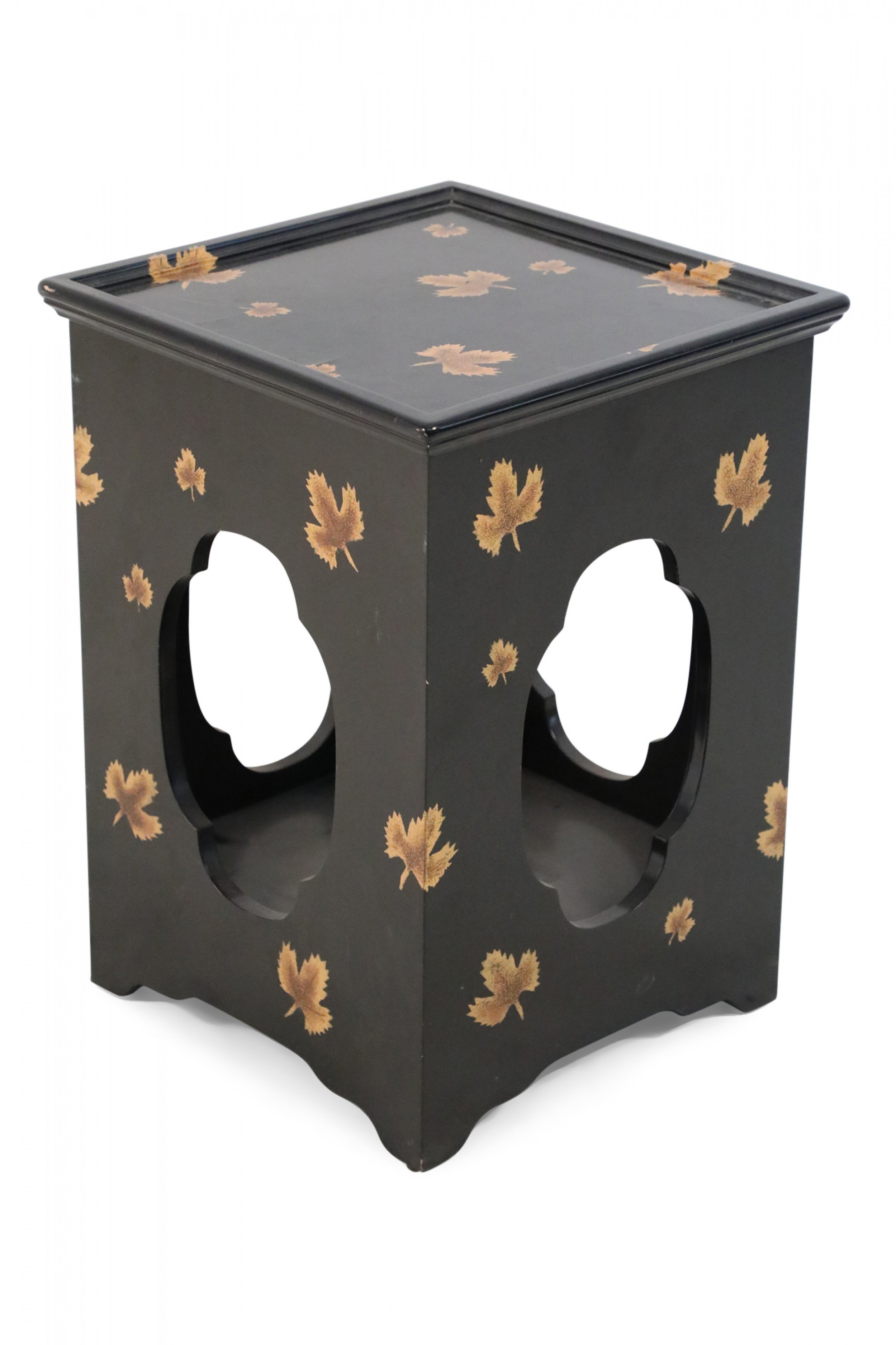 Contemporary Chinese Black and Leaf Motif Square Side Table