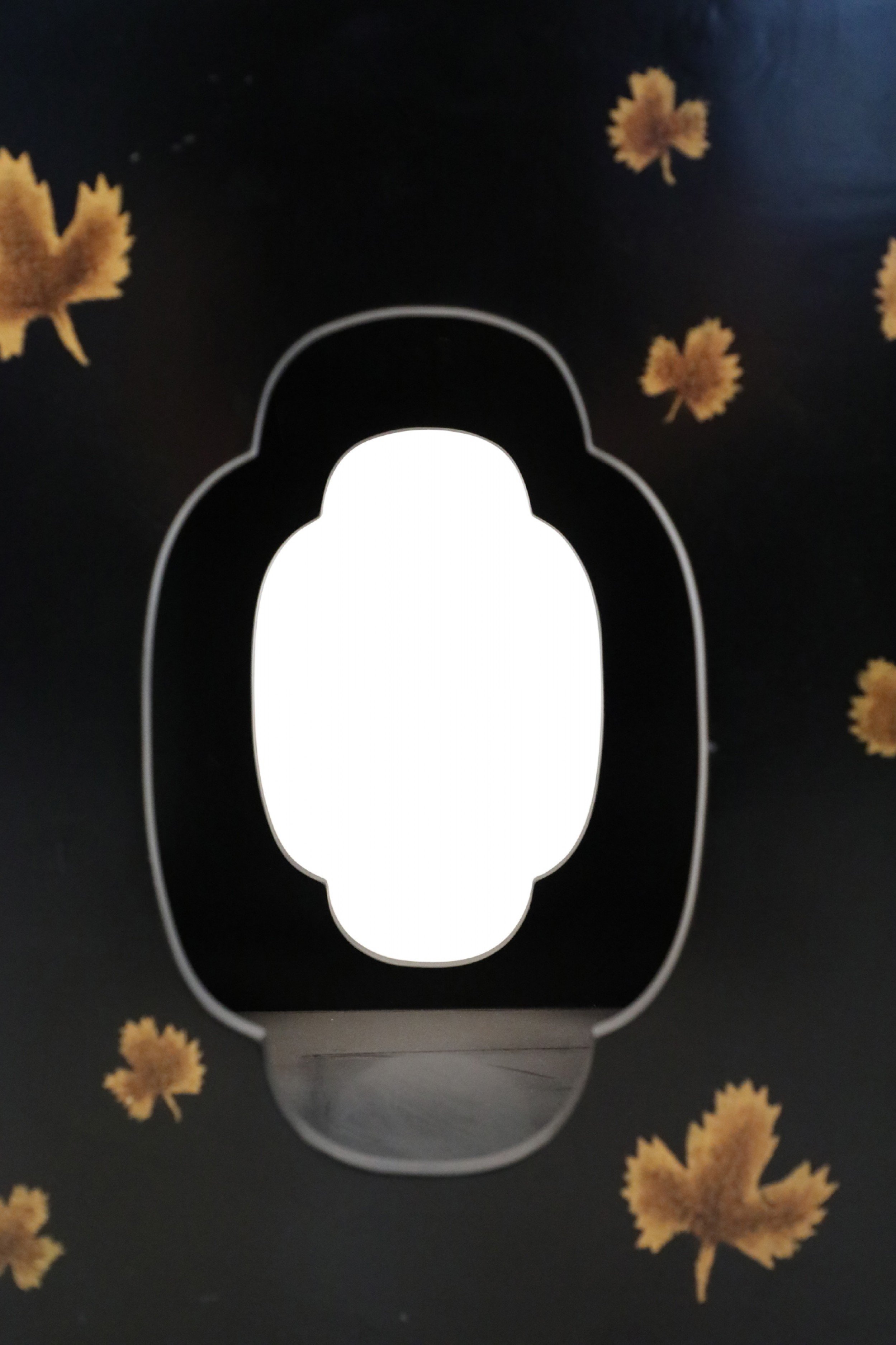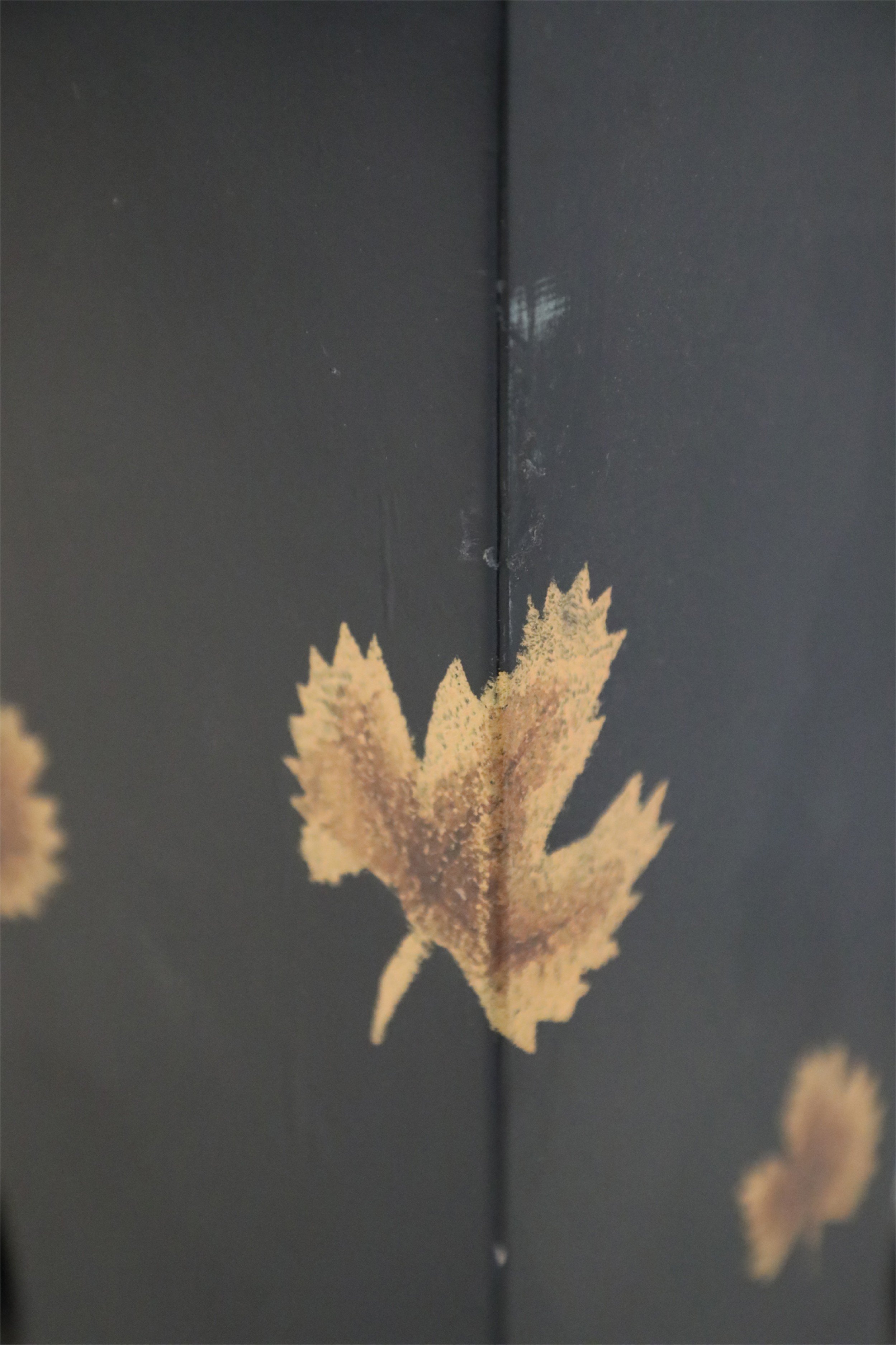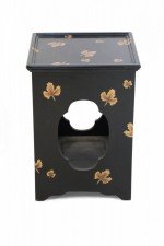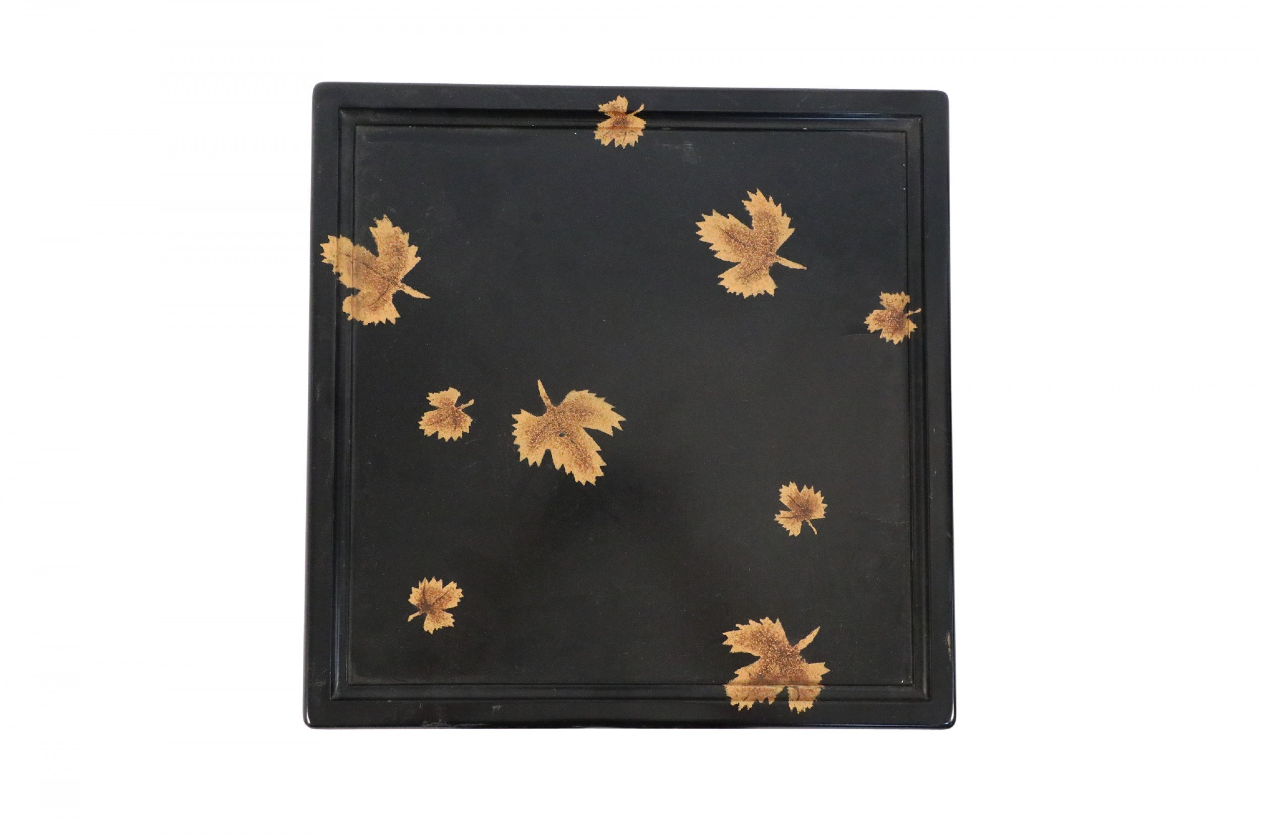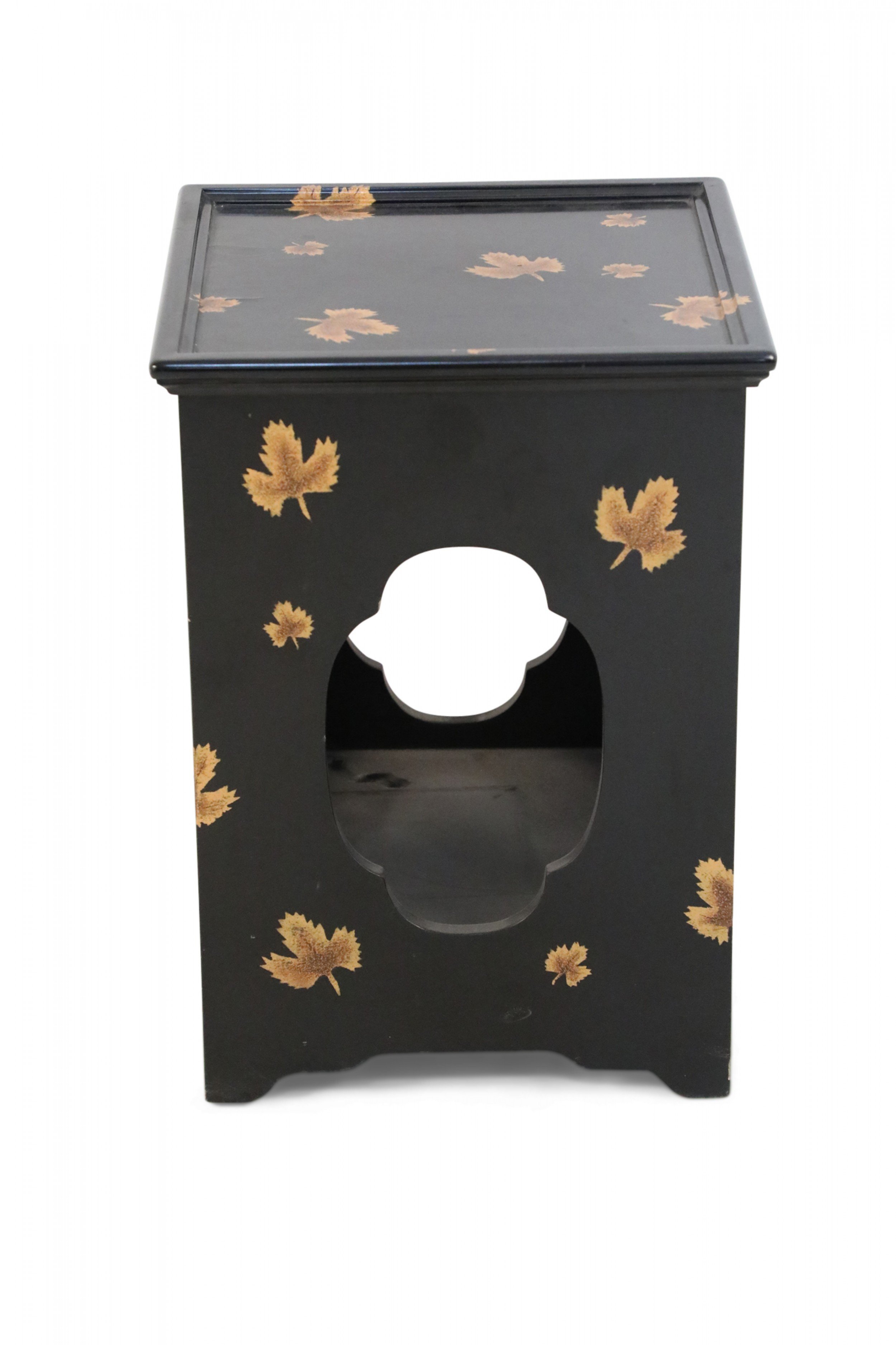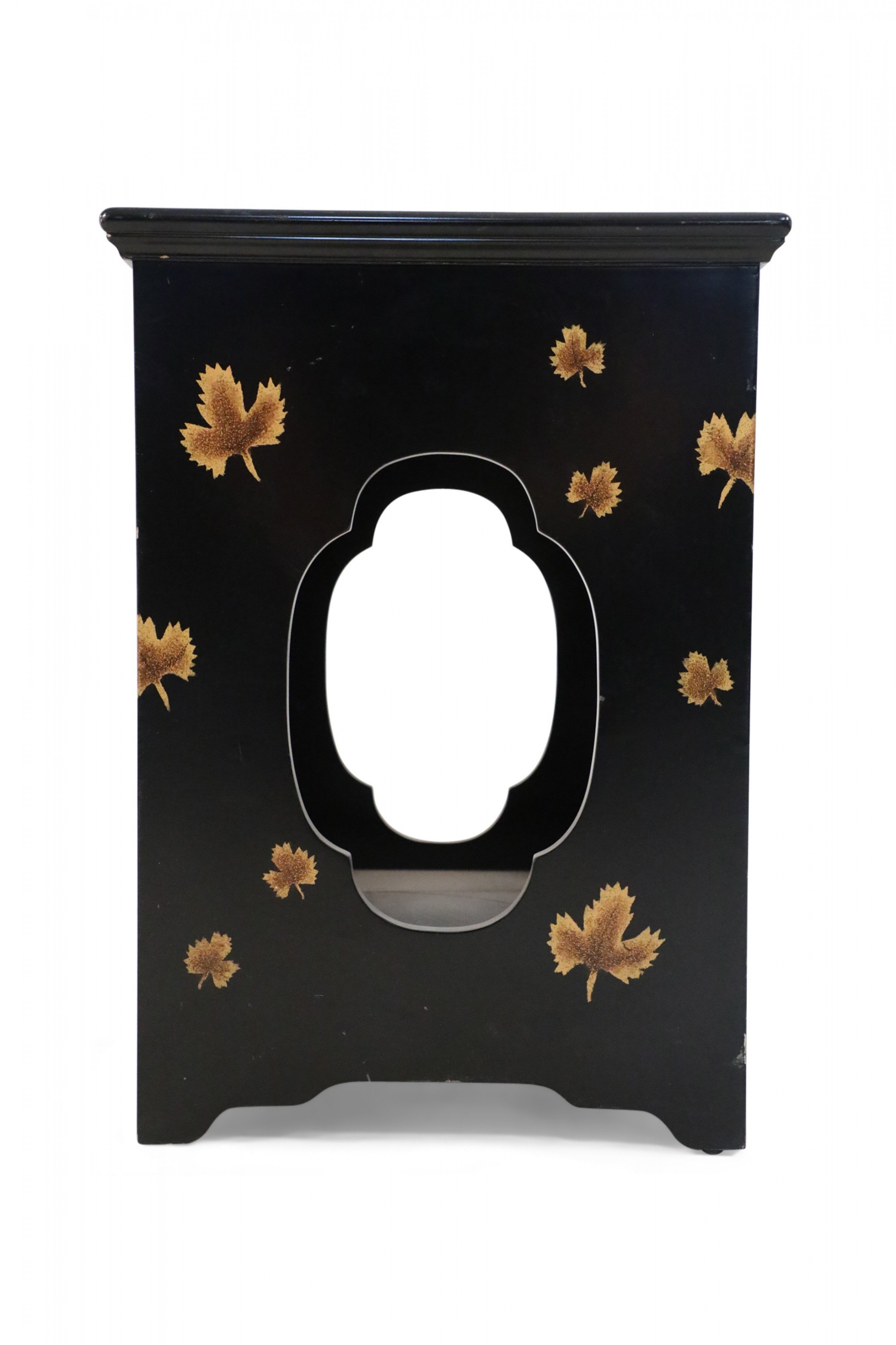 Contemporary Chinese Black and Leaf Motif Square Side Table