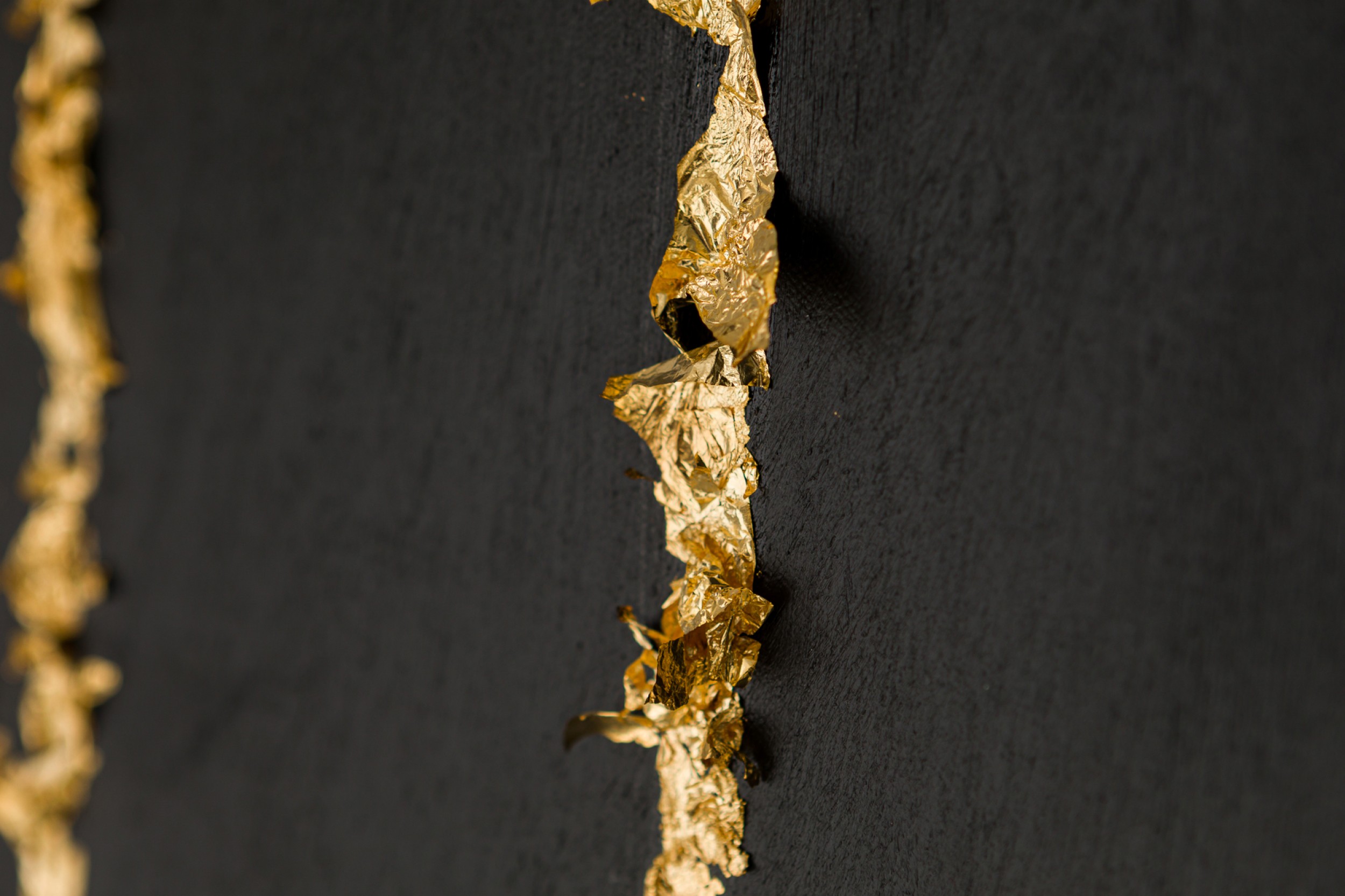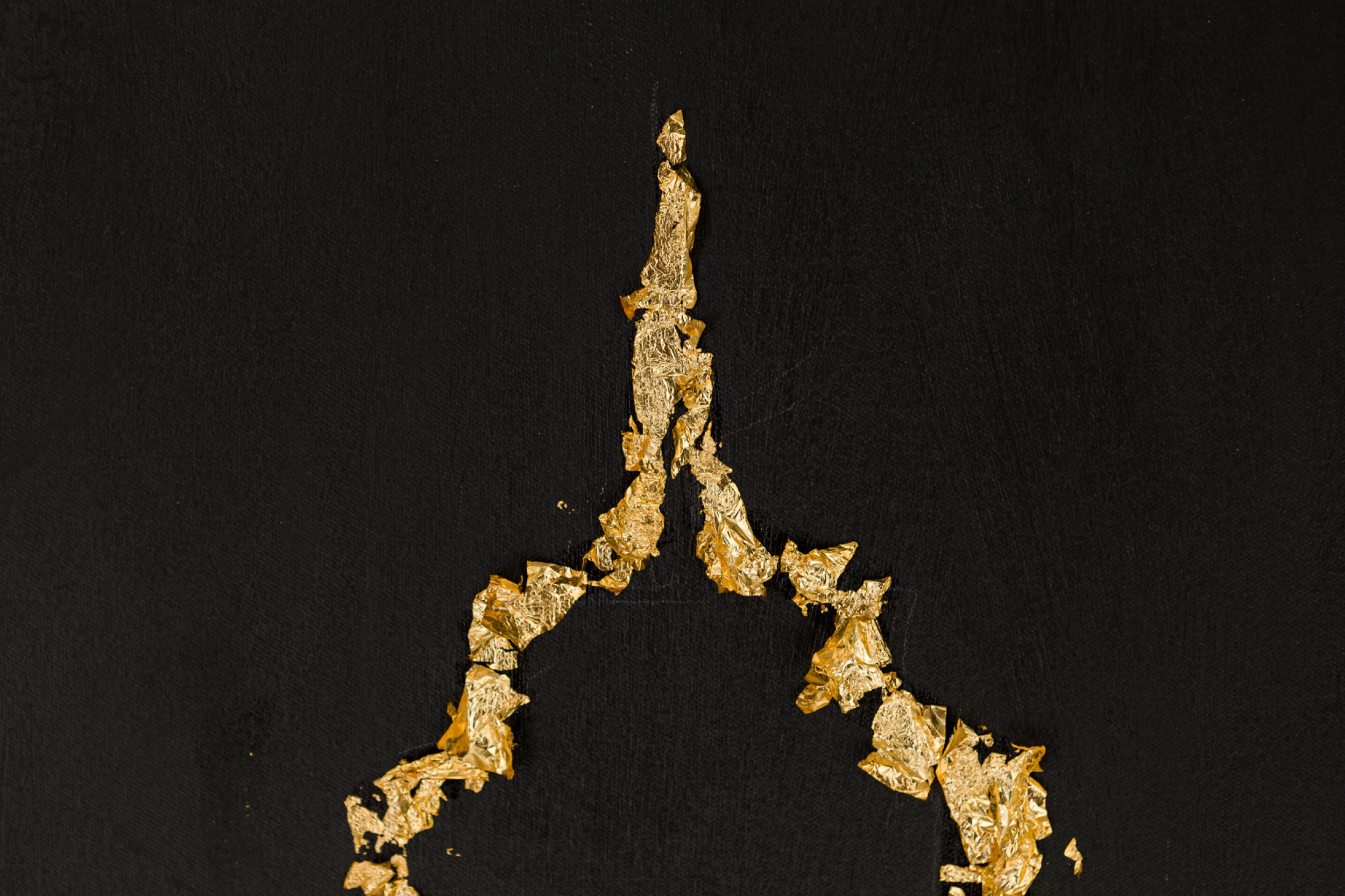 Barbara Kiskovski Contemporary Gold Leaf and Black Acrylic Abstract New York Skyline Painting on Canvas