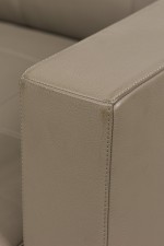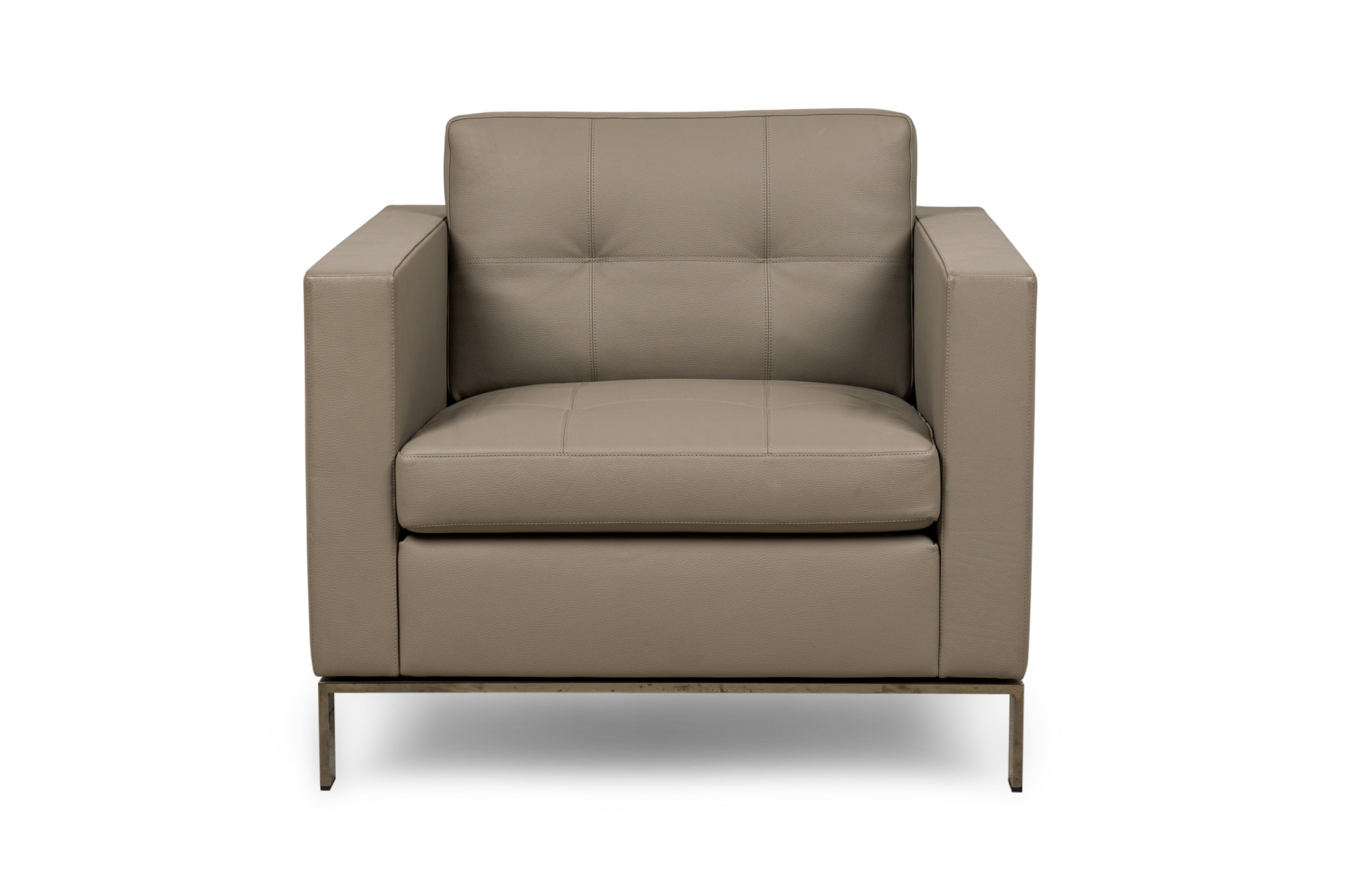 Contemporary "Foster" square back lounge /arm chair with tufted stone gray leather upholstery and silver metal legs (Similar chair without tufting: MTL009A)