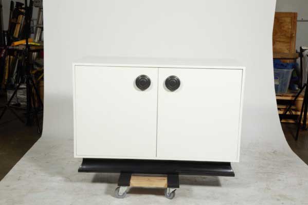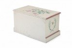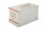 Style: Contemporary/Post-War Design Materials & Techniques: Painted, wood Category: Cabinets & Case Goods, Bedroom, Accessories/Décor/Bric-a-Brac Condition: Scuffs to surface, black spot on back left side of lid. Good; Wear consistent with age and use
