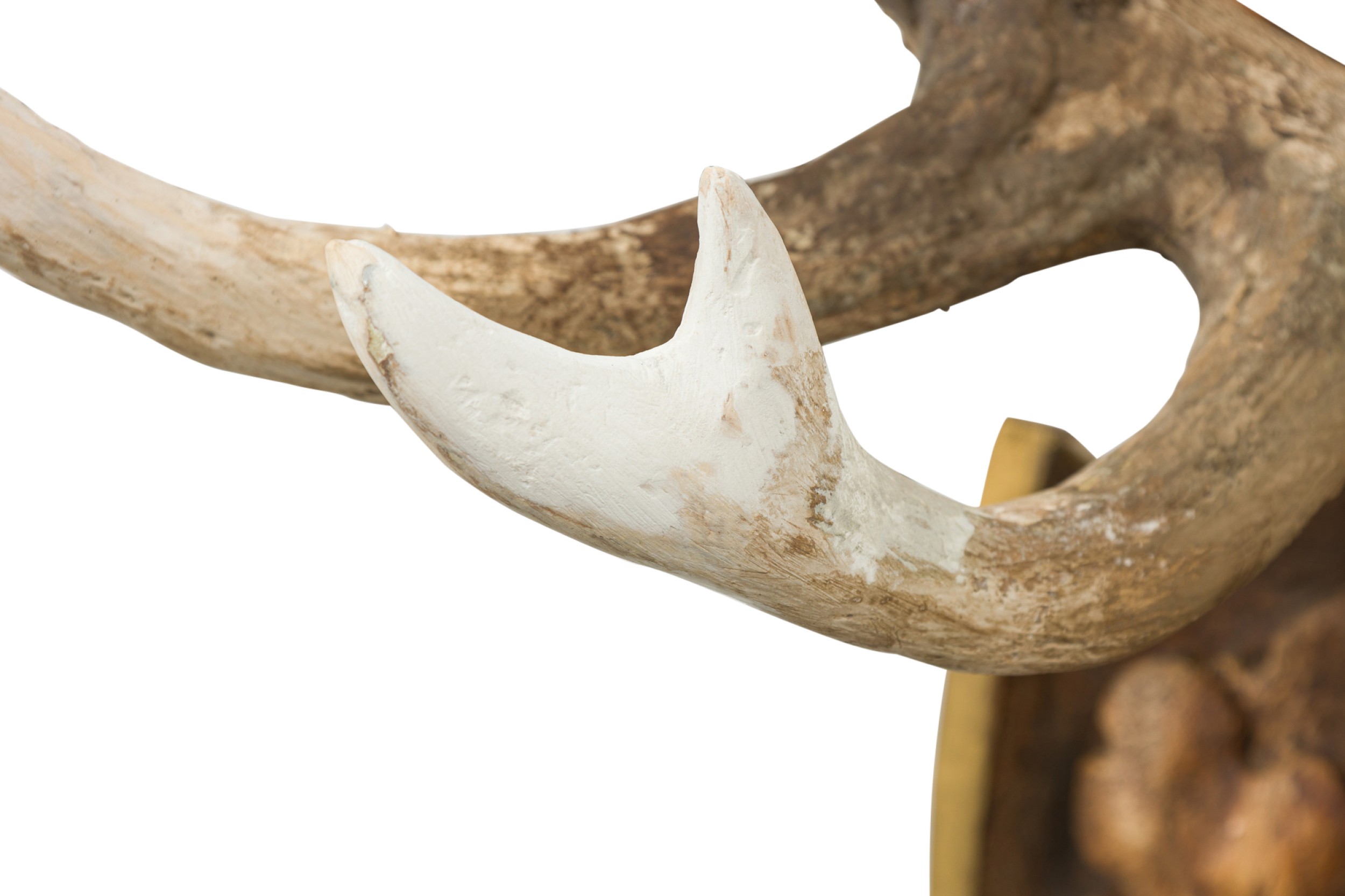 Style: Rustic Materials & Techniques: Wood Category: Sporting/Gaming Condition: Damages to antlers,plaque still in good condition Good; Wear consistent with age and use