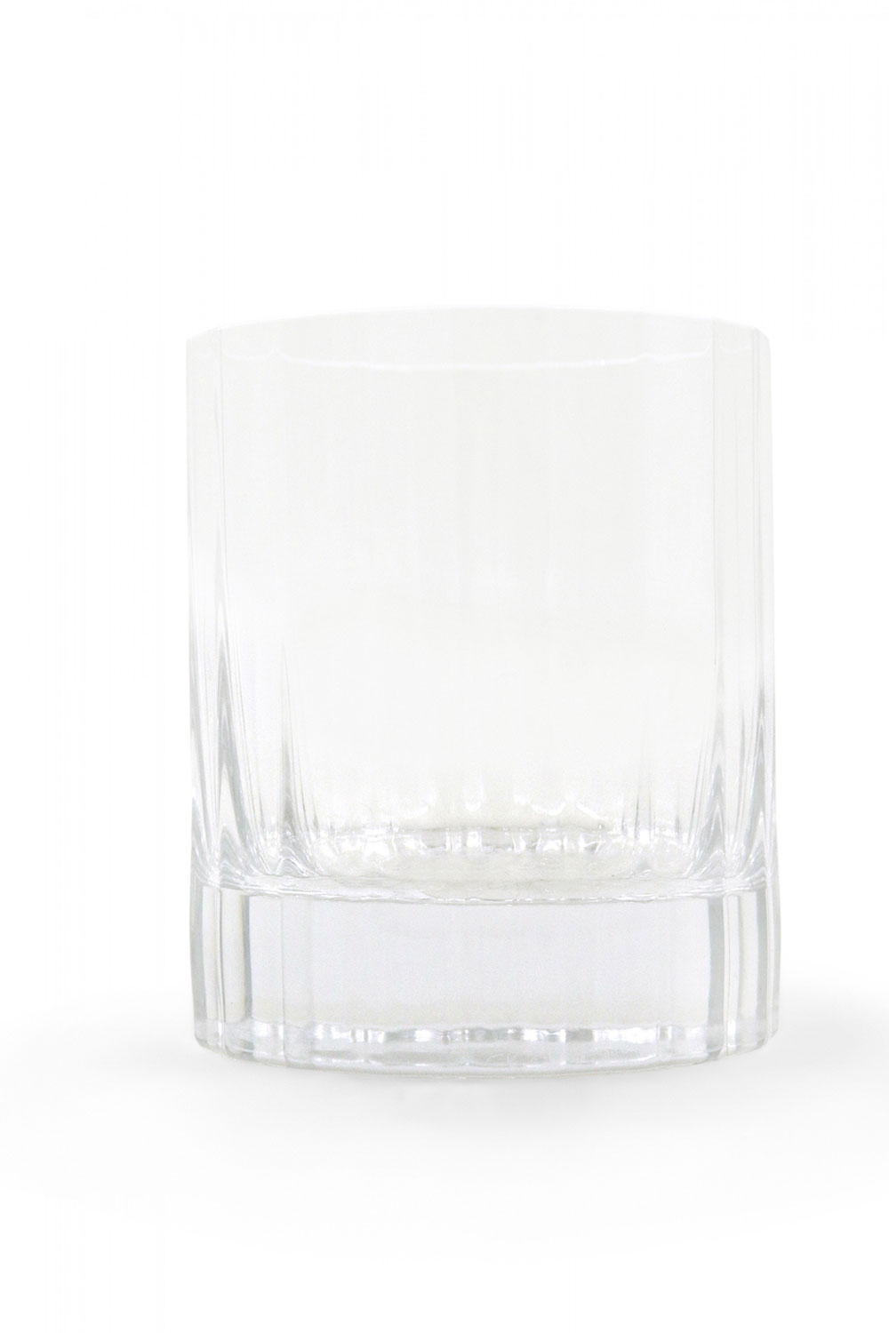 2 Contemporary cut crystal rocks glass with a vertical pattern.