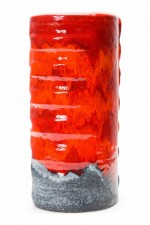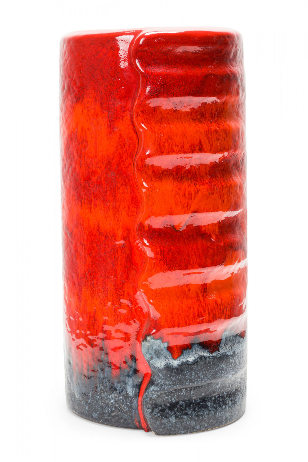 Dümler & Breiden West German Mid-Century Multi-Tonal Red and Gray Fat Lava Glazed Ceramic Vase