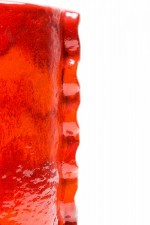 West German Mid-Century abstract ribbed form ceramic vase with an alternating red and orange fat lava glaze with a mottled gray glazed vase. (mark on bottom for Dümler & Breiden, RELIEF 24/39 GERMANY).