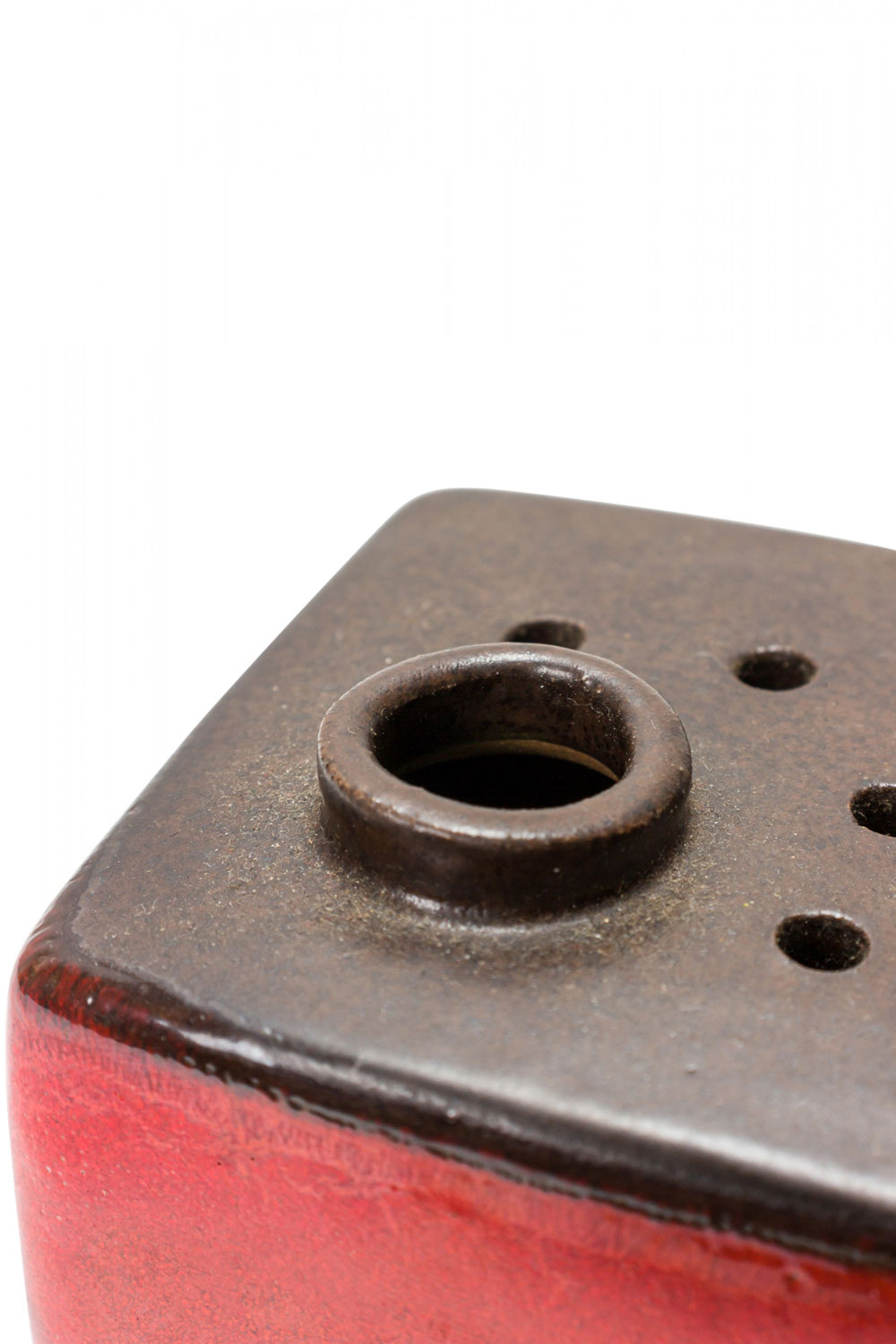 Dümler & Breiden West German Mid-Century Square Red and Brown Glazed Multi-Opening Ceramic Vase