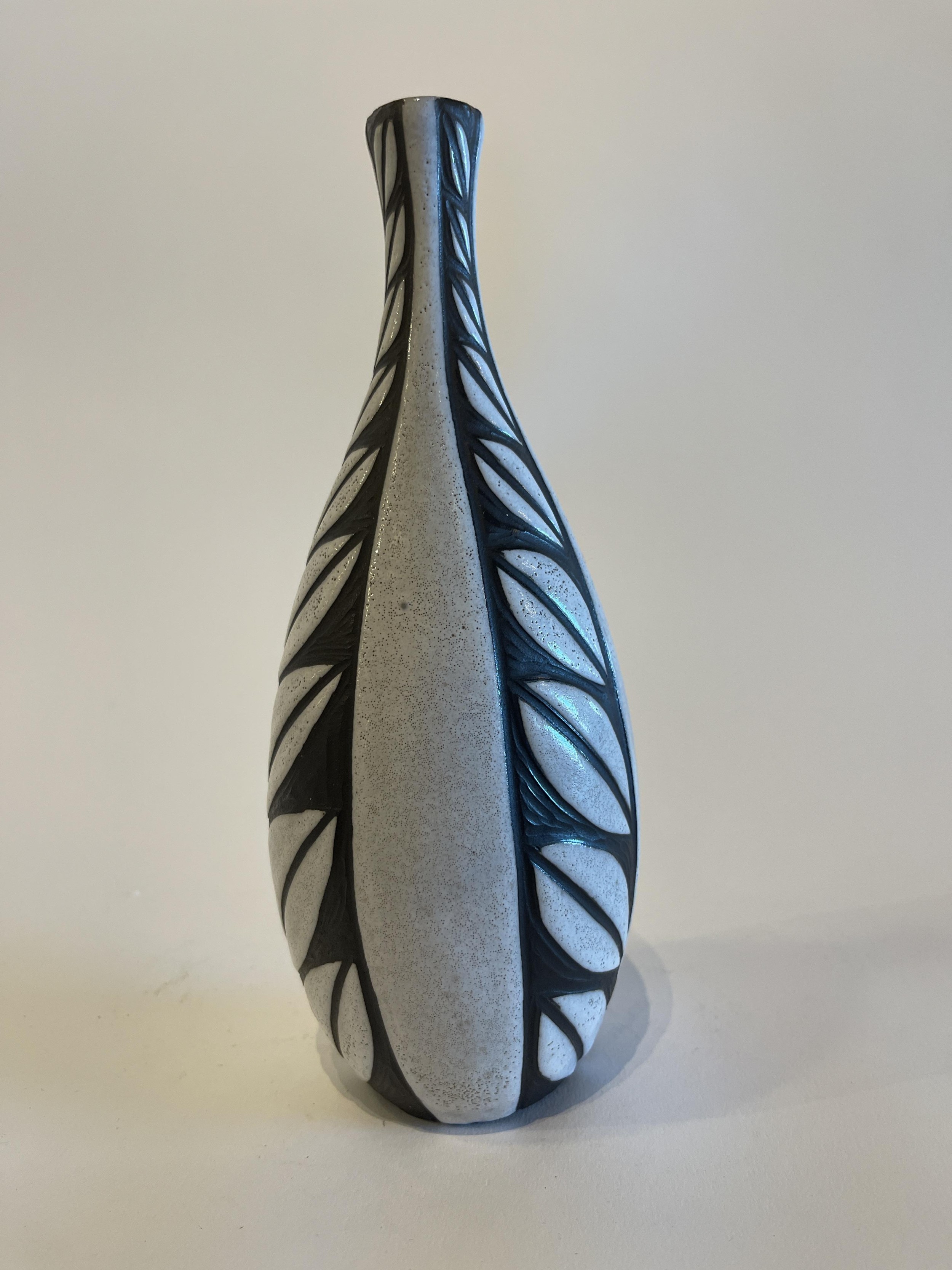 Danish Mid-Century Ceramic Vase with a leaf design and tapered form, Marianne Starck for Andersen and Sons (companion pieces REG4517A-G).