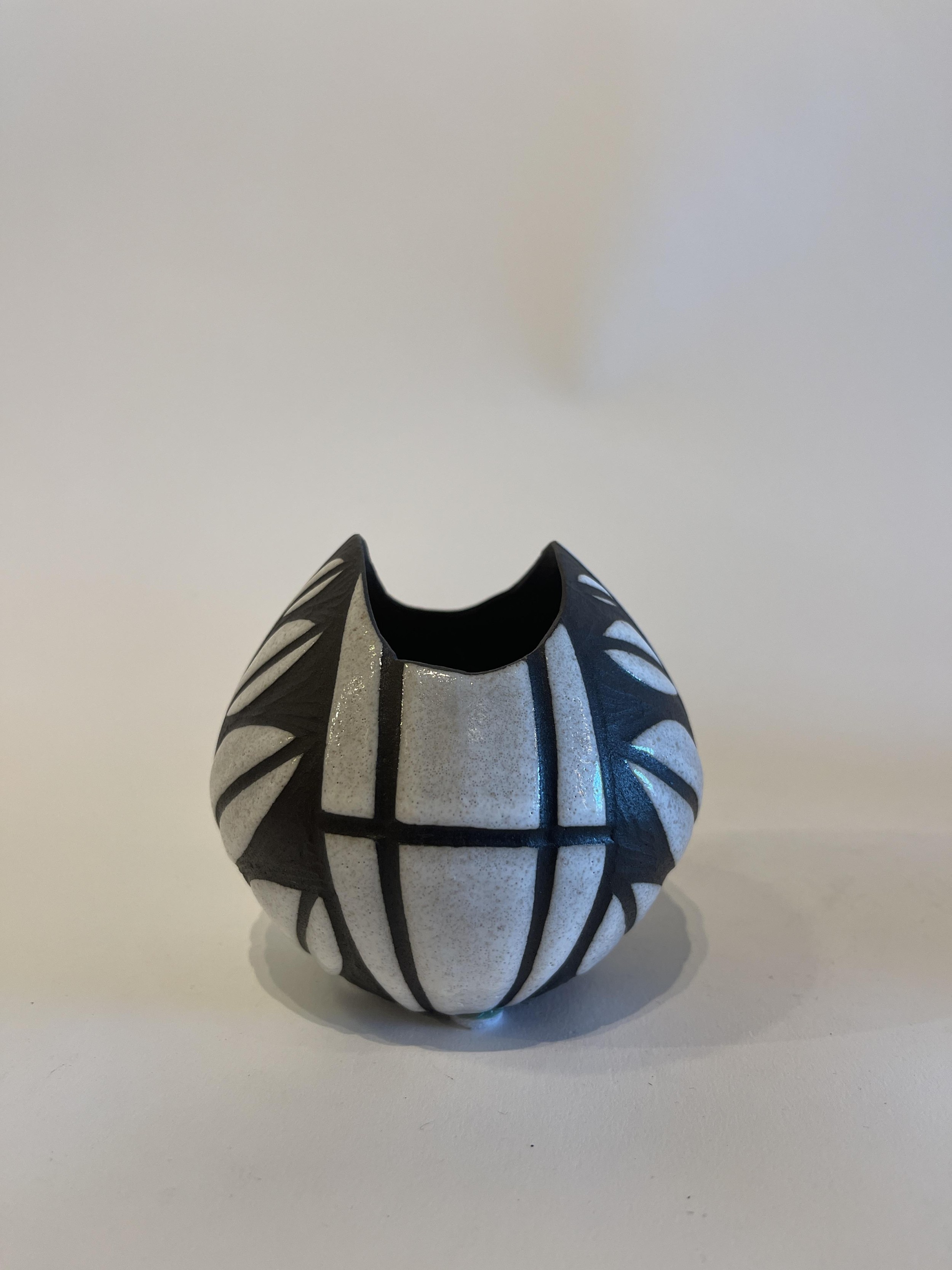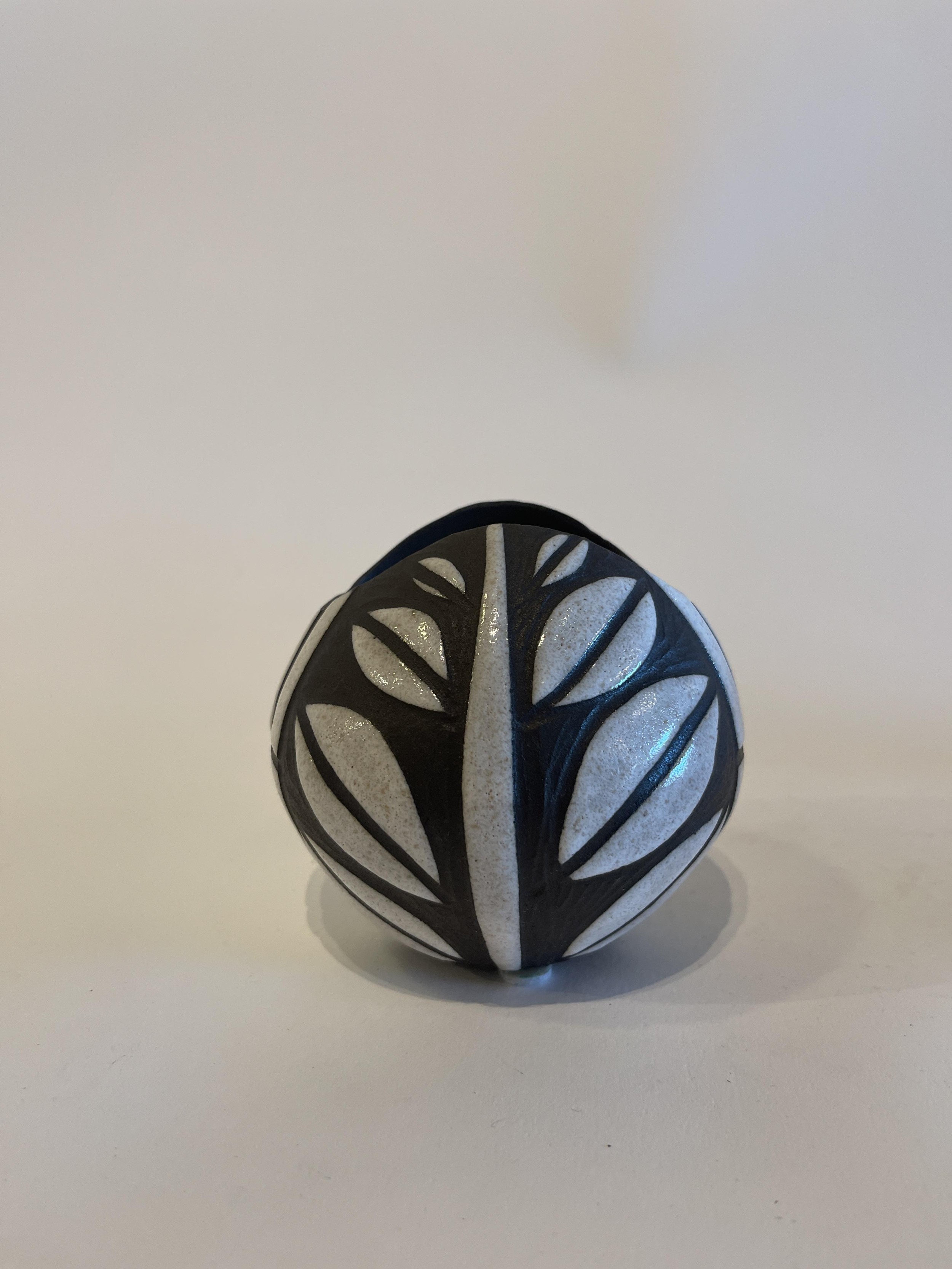 Danish Mid-Century Ceramic Sphere shape Vase with a leaf design, Marianne Starck for Andersen and Sons (companion pieces REG4517A-G)