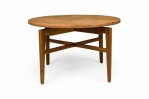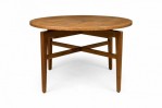 Danish Mid-Century circular walnut dining table with a rotating lazy susan top resting on an X-shaped walnut base with tapered square legs. (JENS RISOM)(Similar tables: DUF0276, DUF0277, DUF0279).