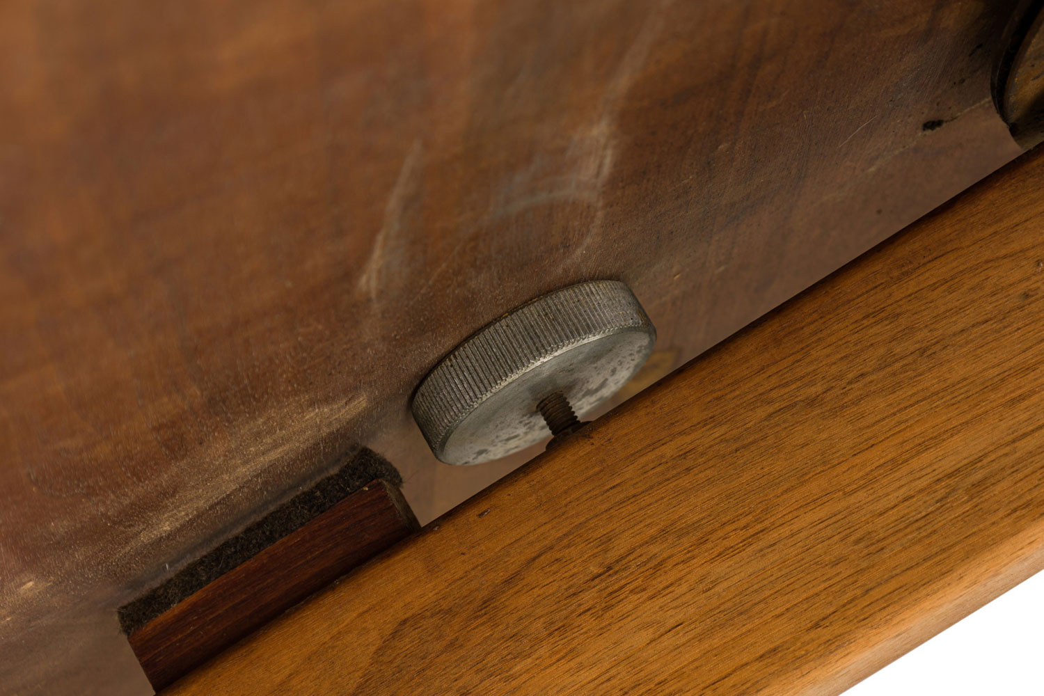 Style: Mid-Century Materials & Techniques: Walnut, wood Category: Tables, Office/Library, Dining Room Good; Wear consistent with age and use