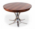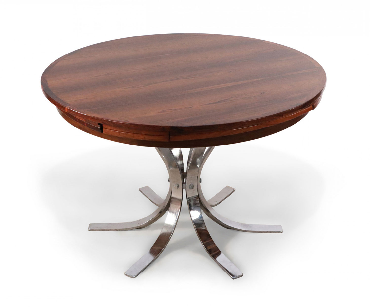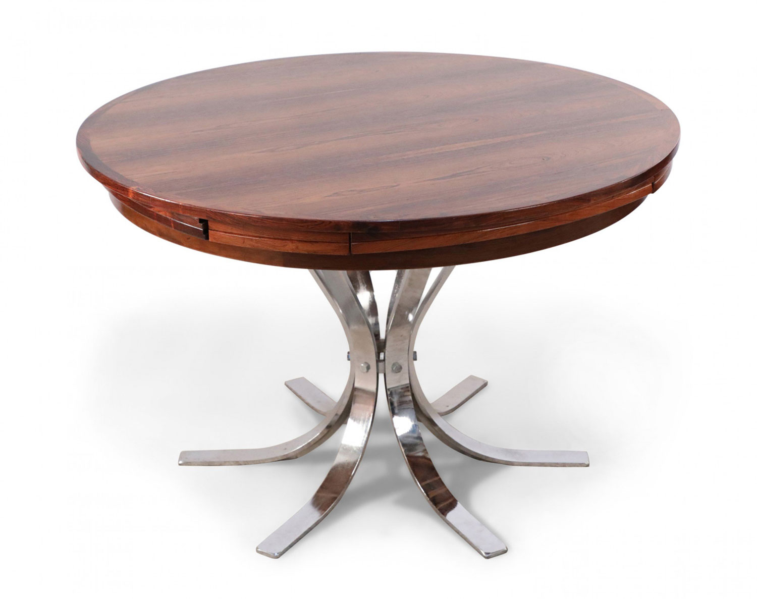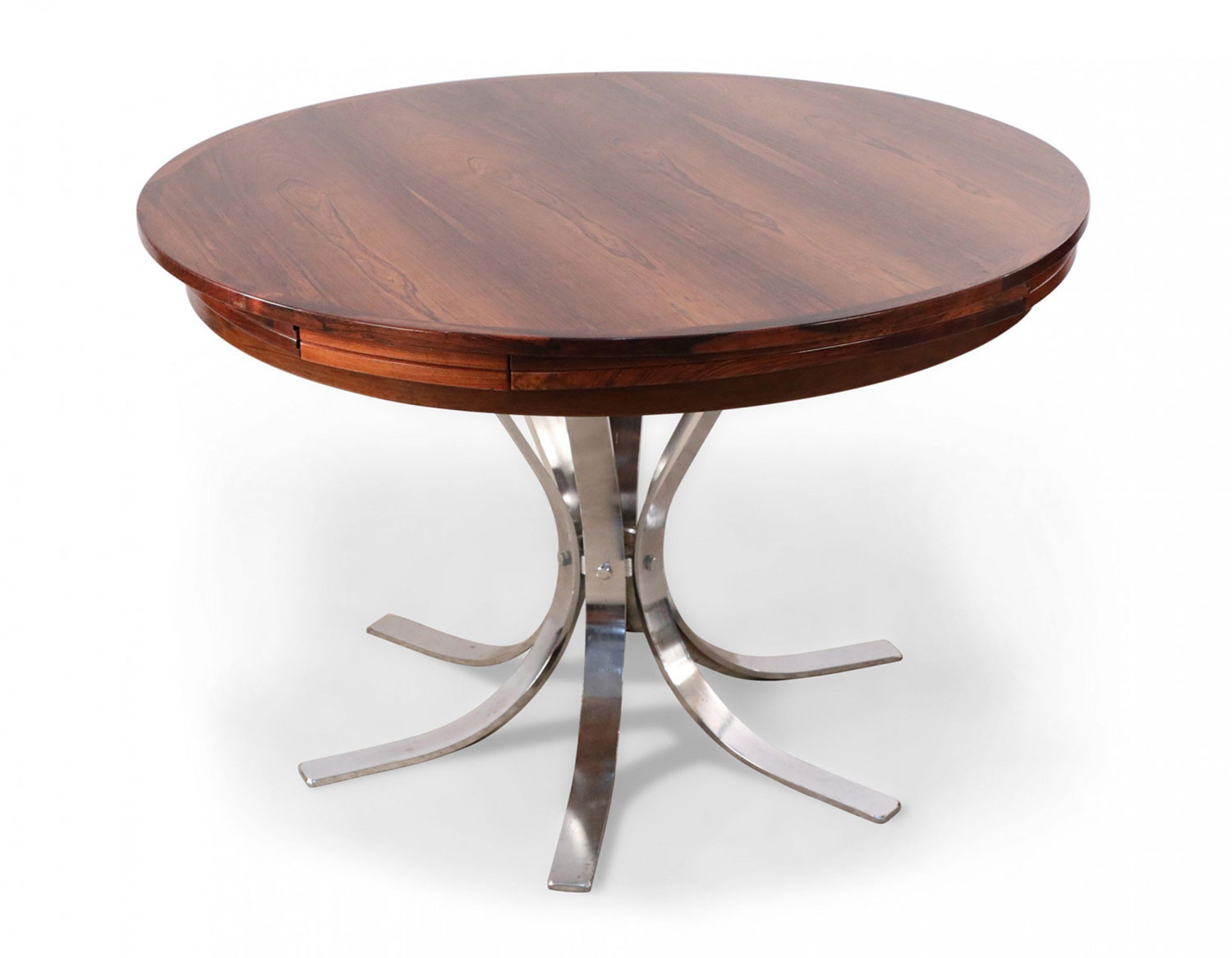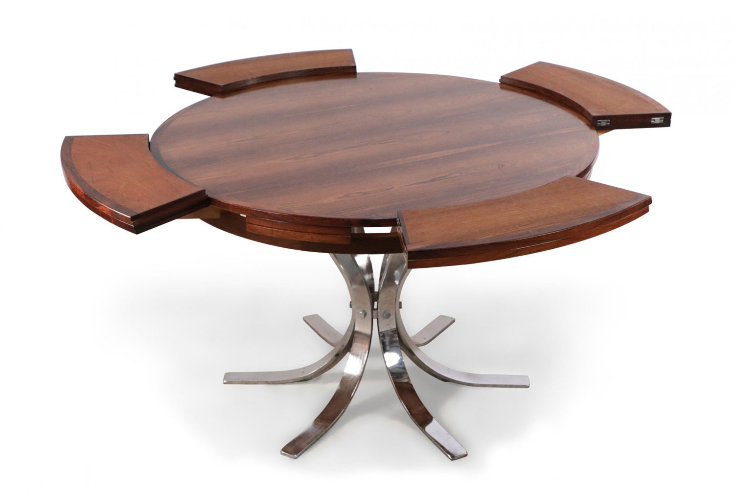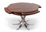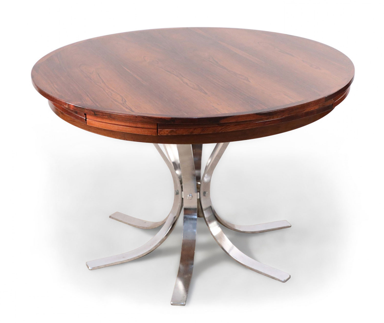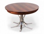 Danish Mid-Century Modern (1960s) rosewood and chrome "Lotus Design" "Flip Flap" table with nickel plated hinges and bases; 28 3/4" high x 59" diameter (extended) (DYRLUND).