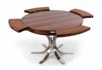 Danish Mid-Century Modern (1960s) rosewood and chrome "Lotus Design" "Flip Flap" table with nickel plated hinges and bases; 28 3/4" high x 59" diameter (extended) (DYRLUND)