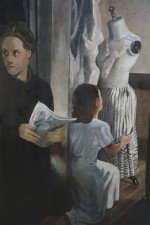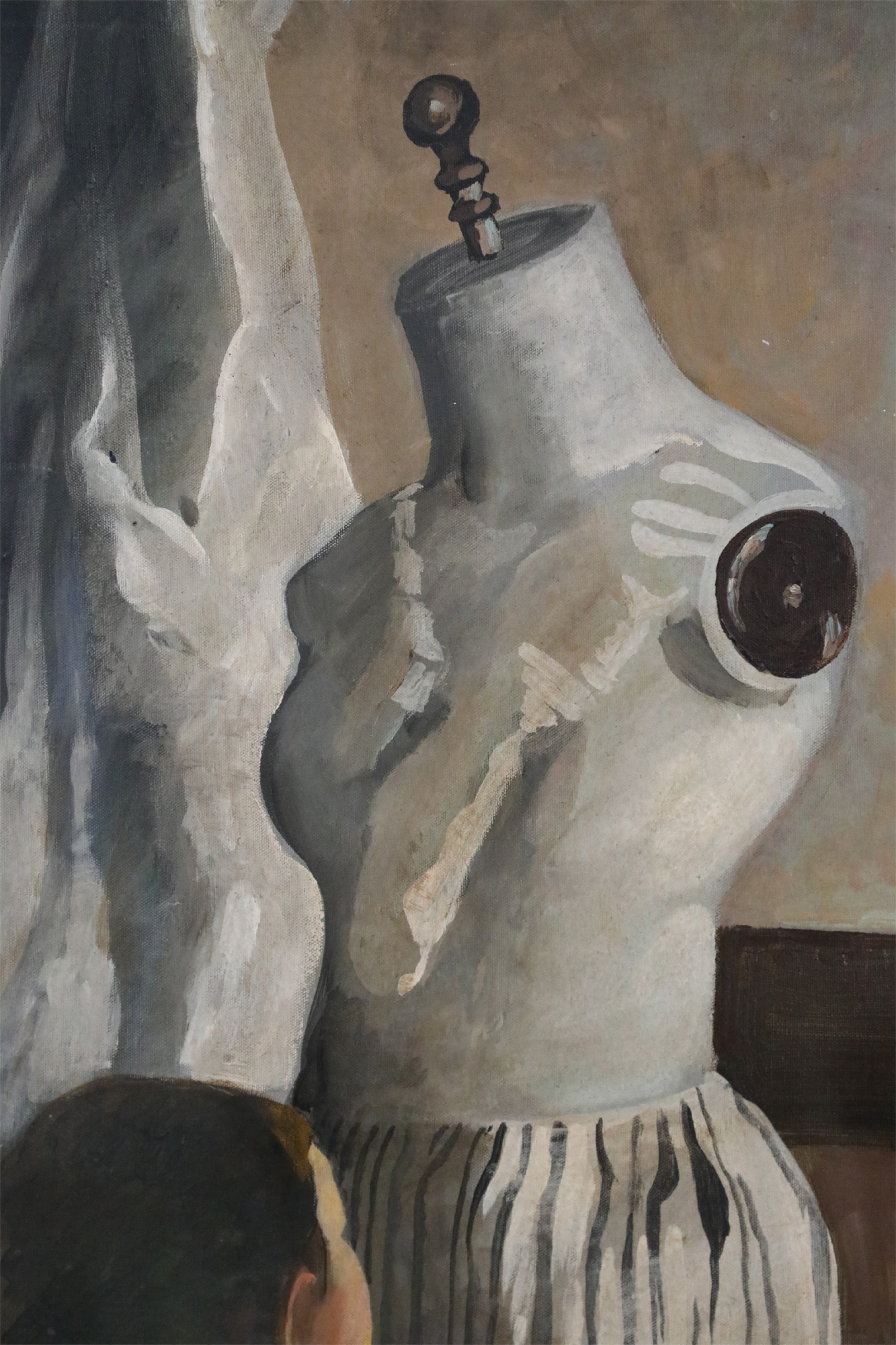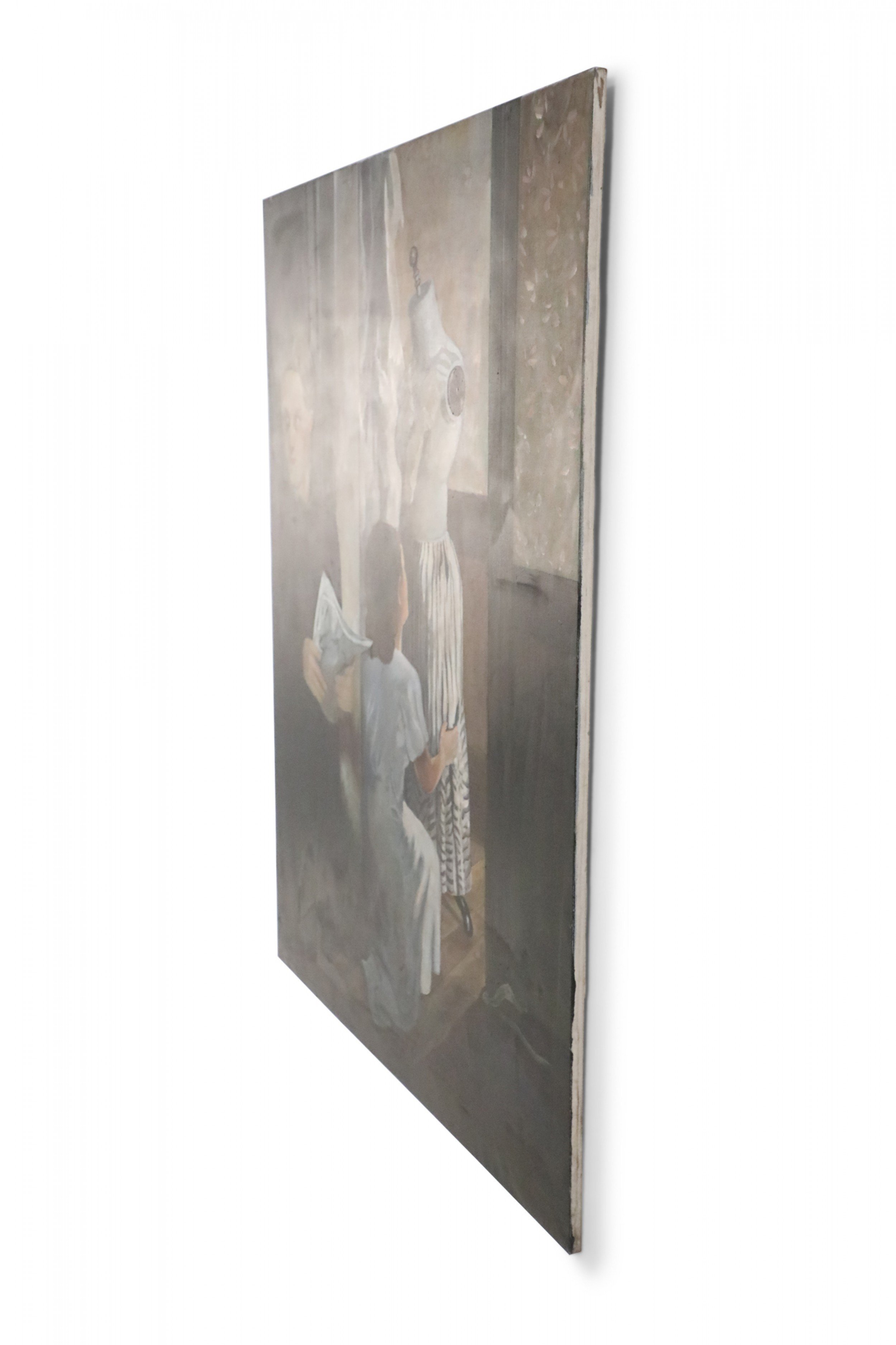 Vintage Dressmaker and Customer Oil Painting on Canvas