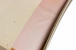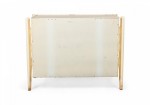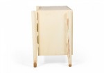 American Mid-Century four drawer rectangular chest with a four post 'exoskeleton' design, painted beige. (EDMOND SPENCE)(Matching nightstand: DUF0263).