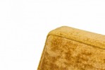 American Mid-Century lounge armchair with square arms and a slightly tapered short back, with crushed gold velour upholstery with button tufted detail on the back cushion, resting on four tapered walnut legs. (EDWARD J WORMLEY FOR DUNBAR FURNITURE COMPANY).