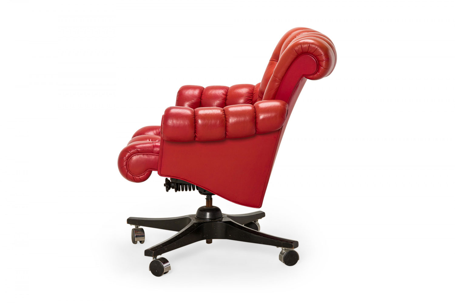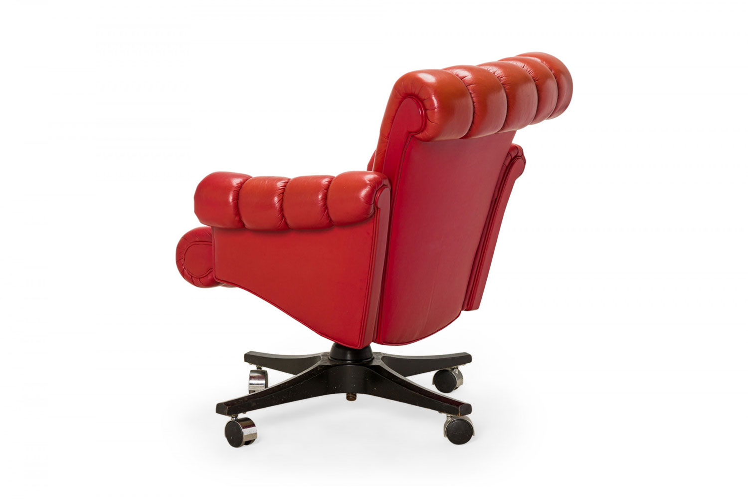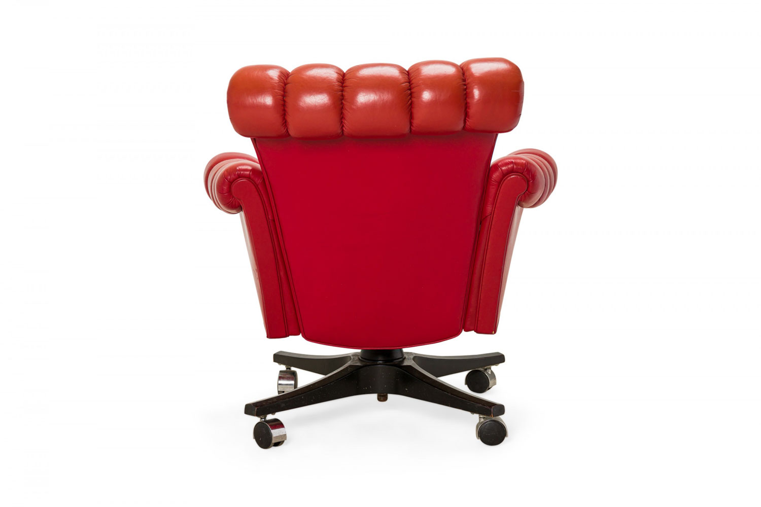 Edward J Wormley for Dunbar American Mid-Century 'In Clover' Tufted Red Leather Rolling Office Chair