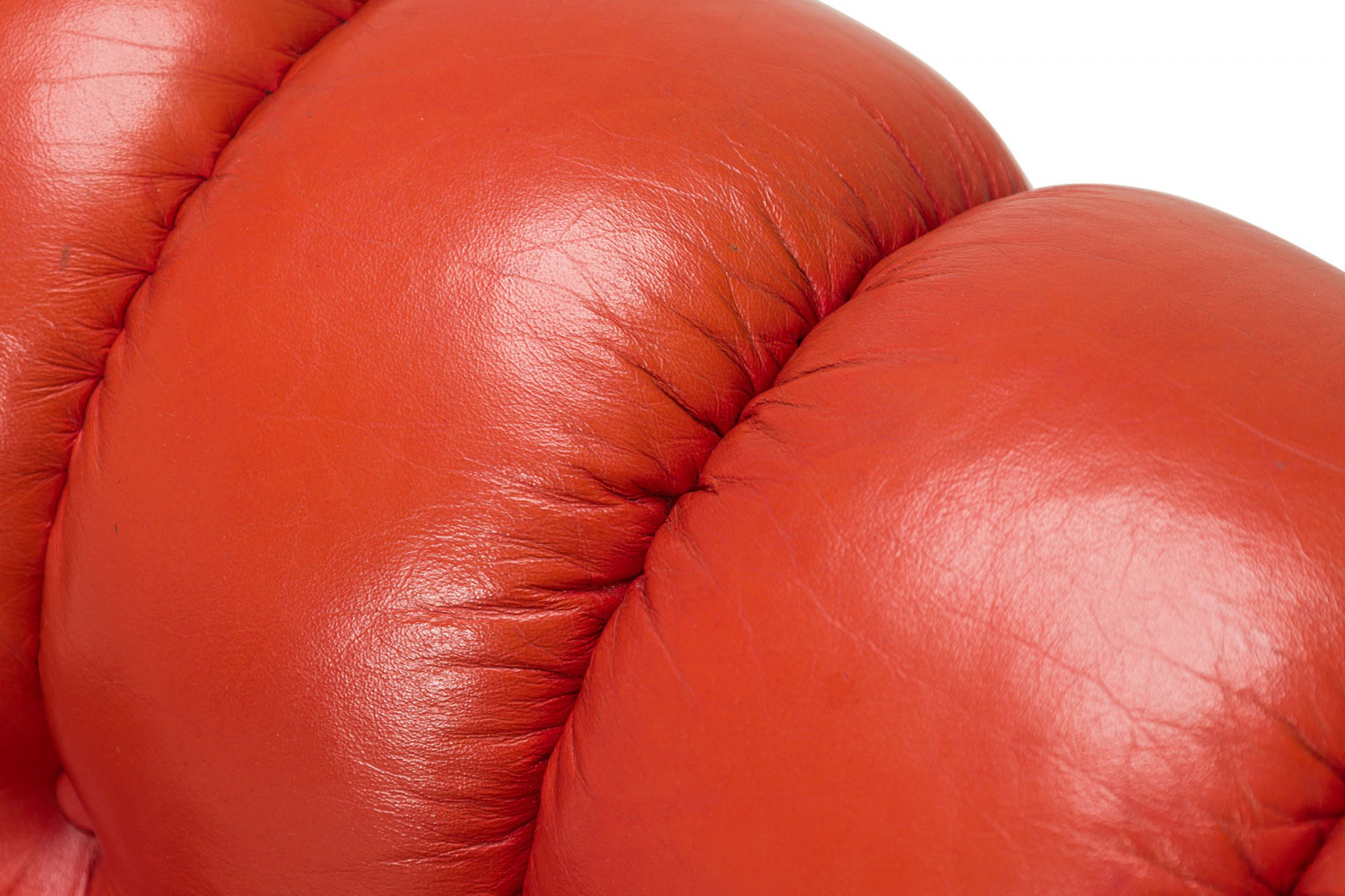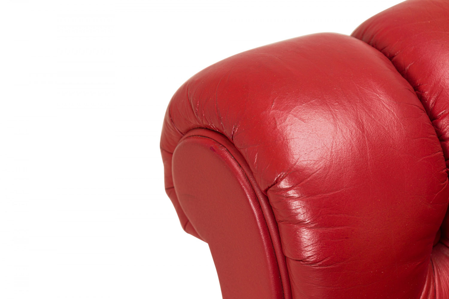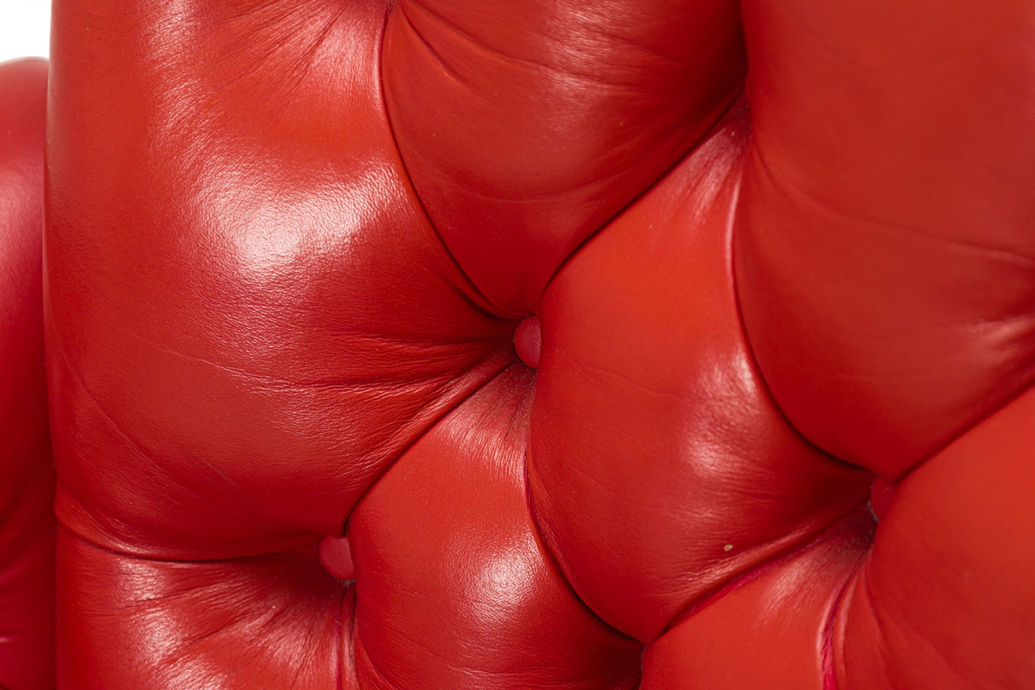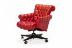 Edward J Wormley for Dunbar American Mid-Century 'In Clover' Tufted Red Leather Rolling Office Chair