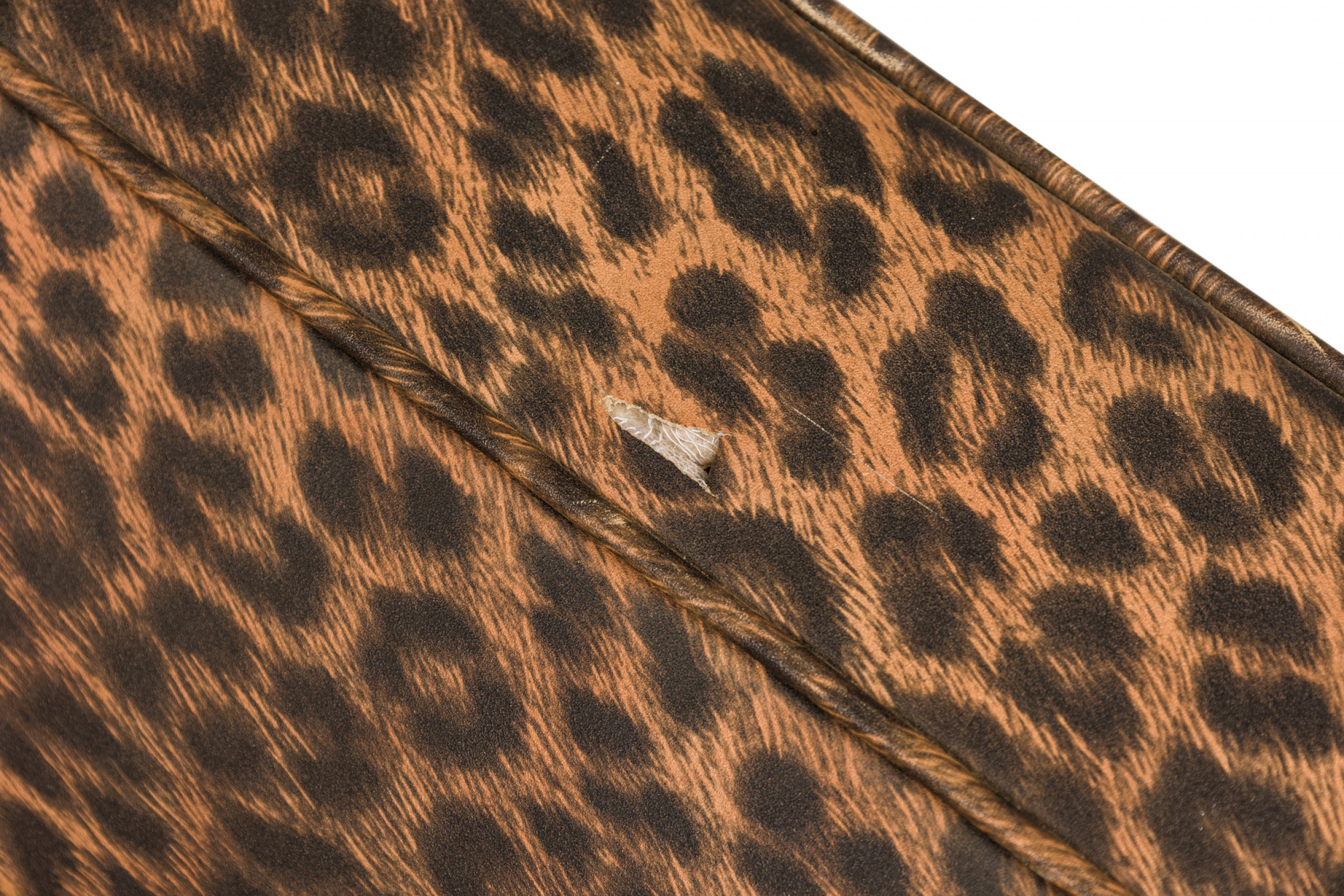 Edward J Wormley for Dunbar American Mid-Century Vinyl Leopard Print Upholstered Three Seat Sofa