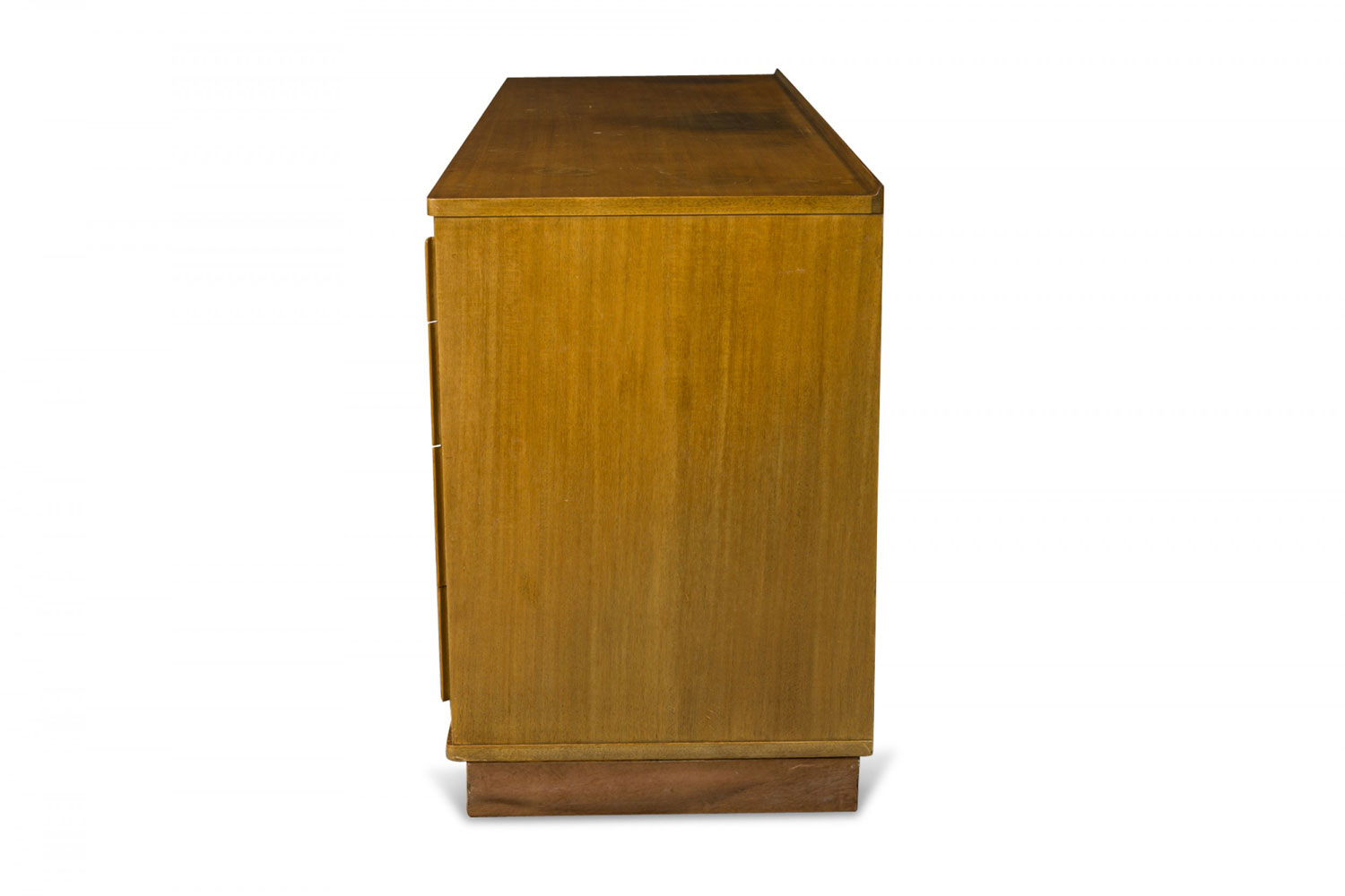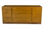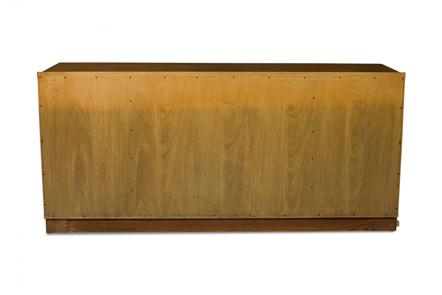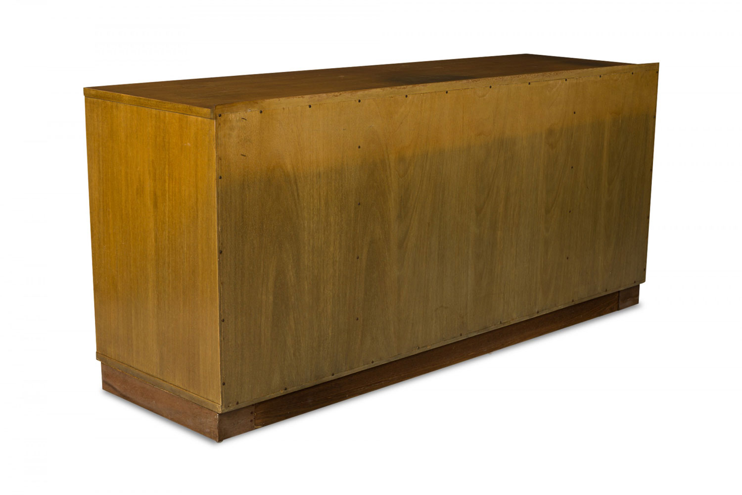 American Mid-Century walnut low chest of drawers with three sets of four drawers, one set wider and central, flanked on either side by two narrower sets of drawers. (EDWARD WORMLEY FOR DUNBAR FURNITURE CO.)