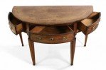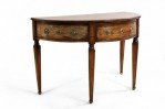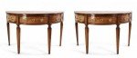 Pair of English Sheraton Style Demilune Inlaid Oak Console Tables