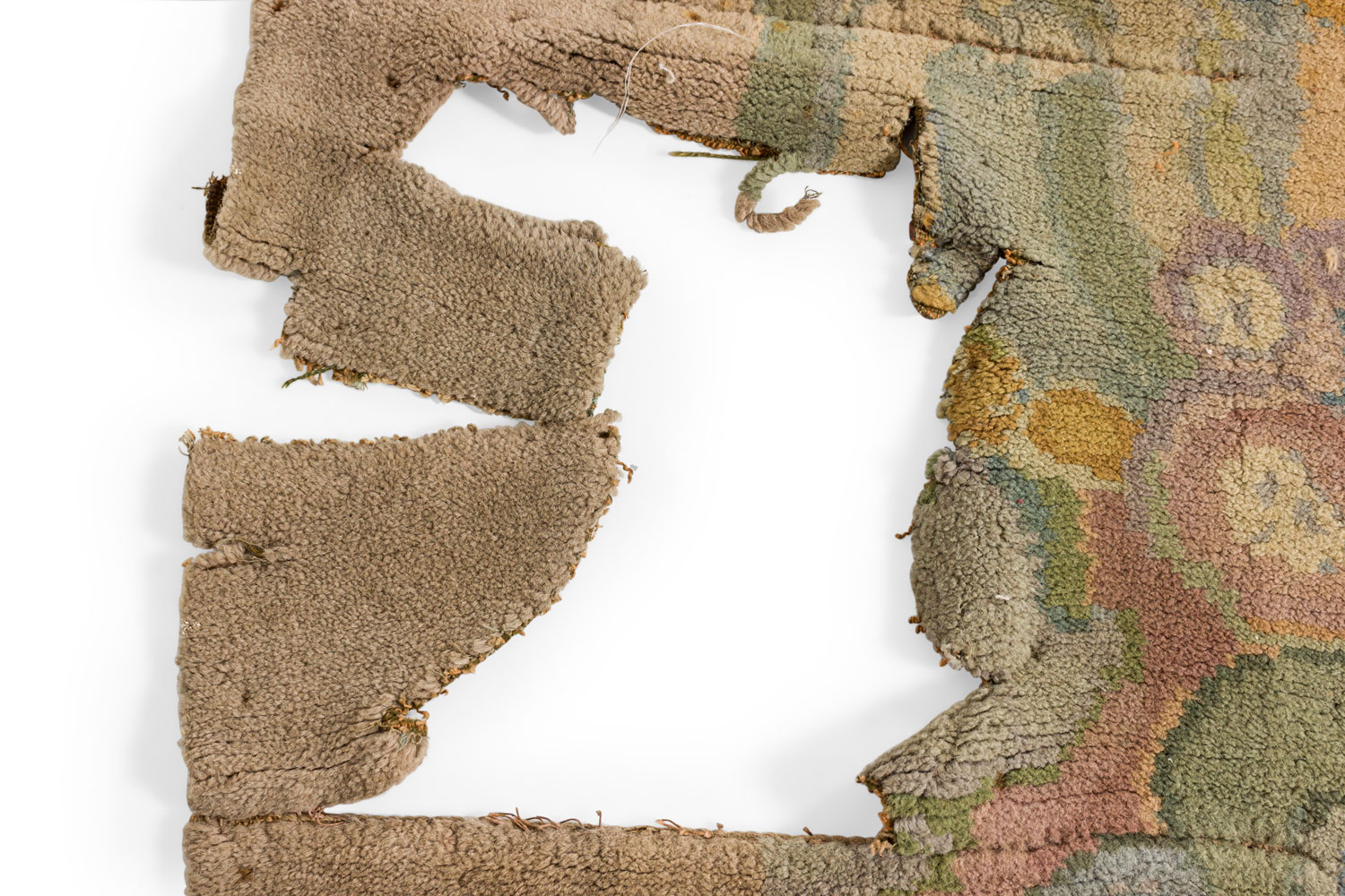 Style: English Materials & Techniques: Wool Category: Rugs/Textile Condition: Damaged: wear and holes