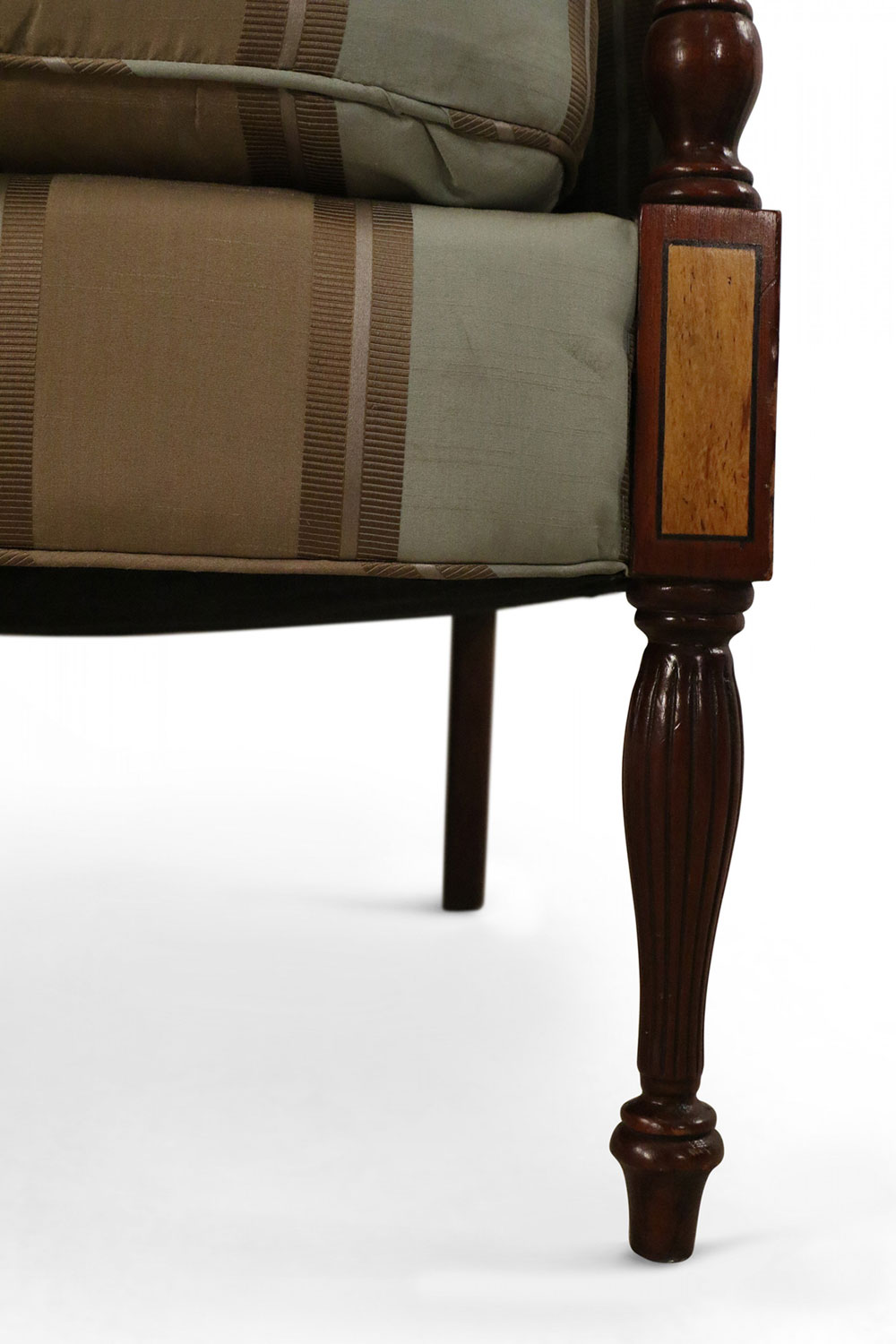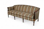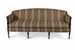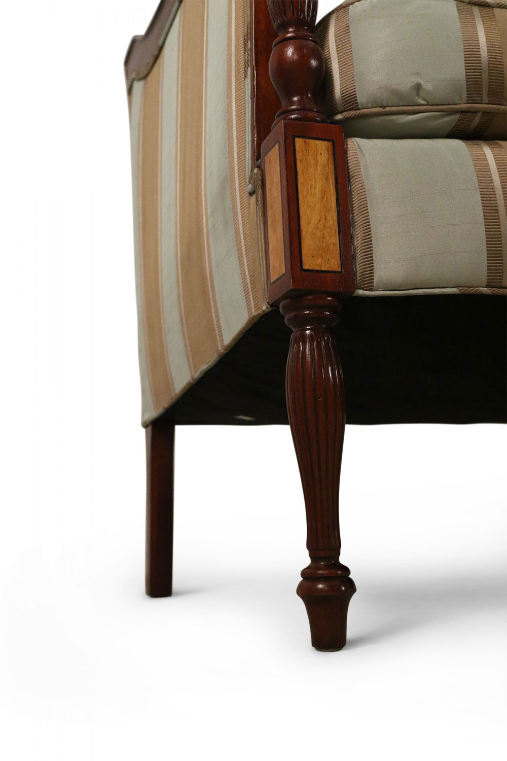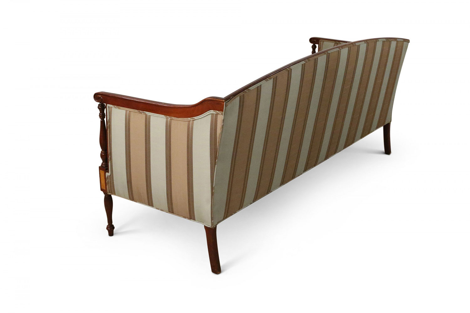 English Sheraton Style Blue and Brown Striped Upholstered Mahogany Sofa