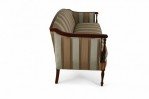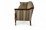 English Sheraton-style (20th Century) 3-seater sofa with a carved mahogany frame with beige and light blue striped upholstery..