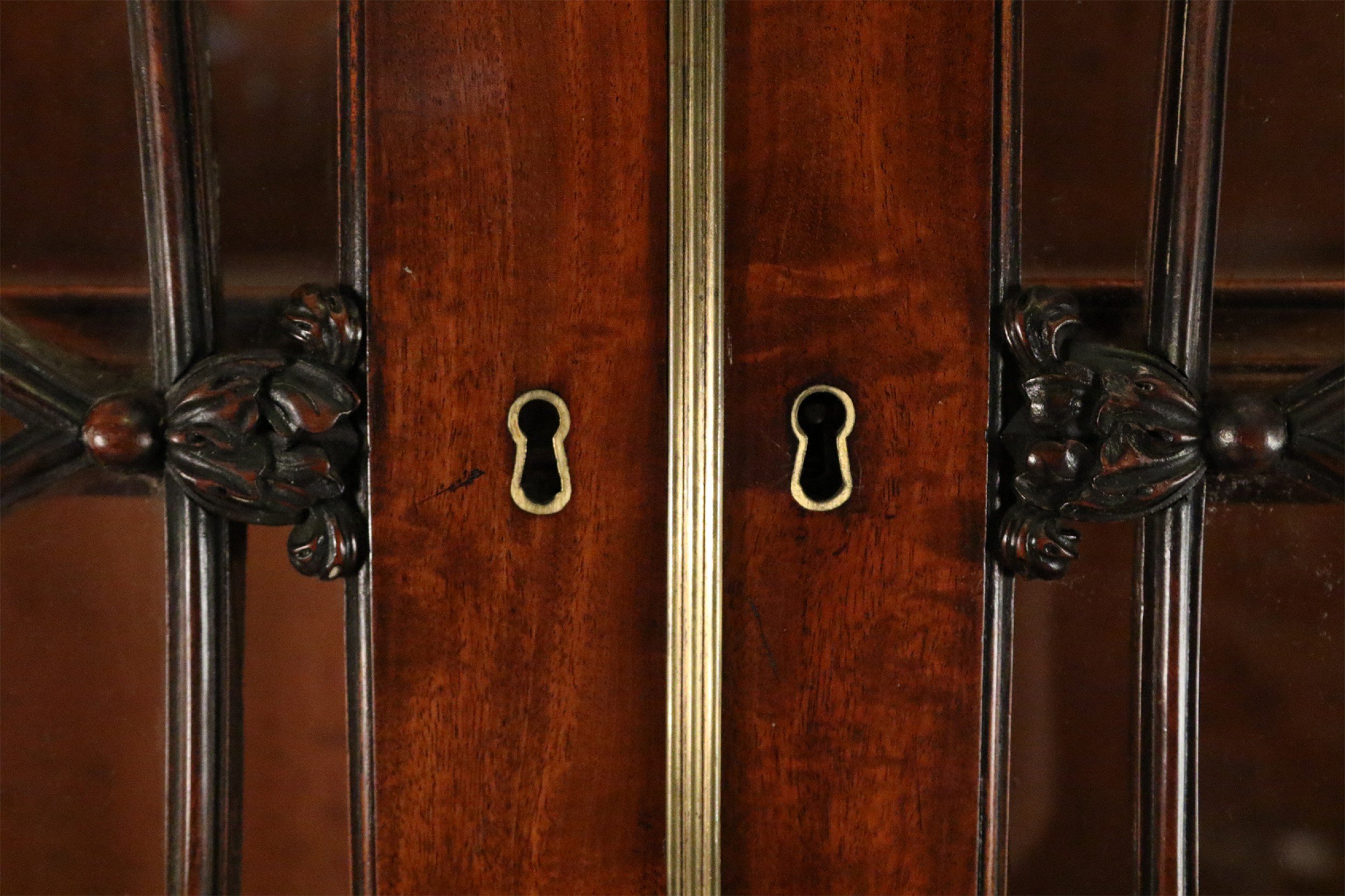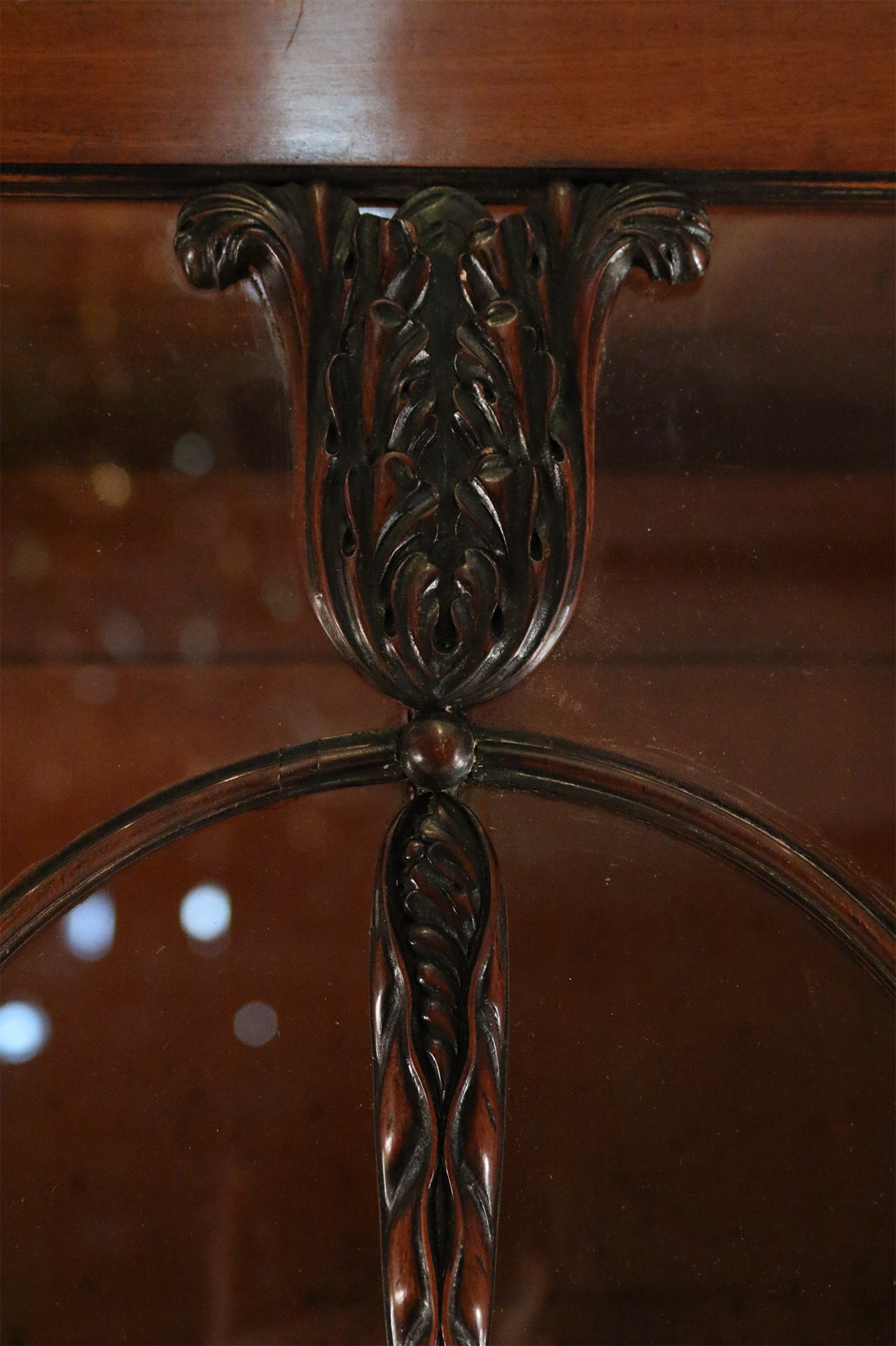 Style: English Materials & Techniques: Glass, inlaid, inlay, mahogany, wood Category: Cabinets & Case Goods