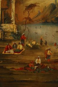English Victorian Black Lacquered Painted Moorish Scenes Armoire