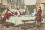 English Victorian Lithograph of Hunters and Others Gathering for a Meal