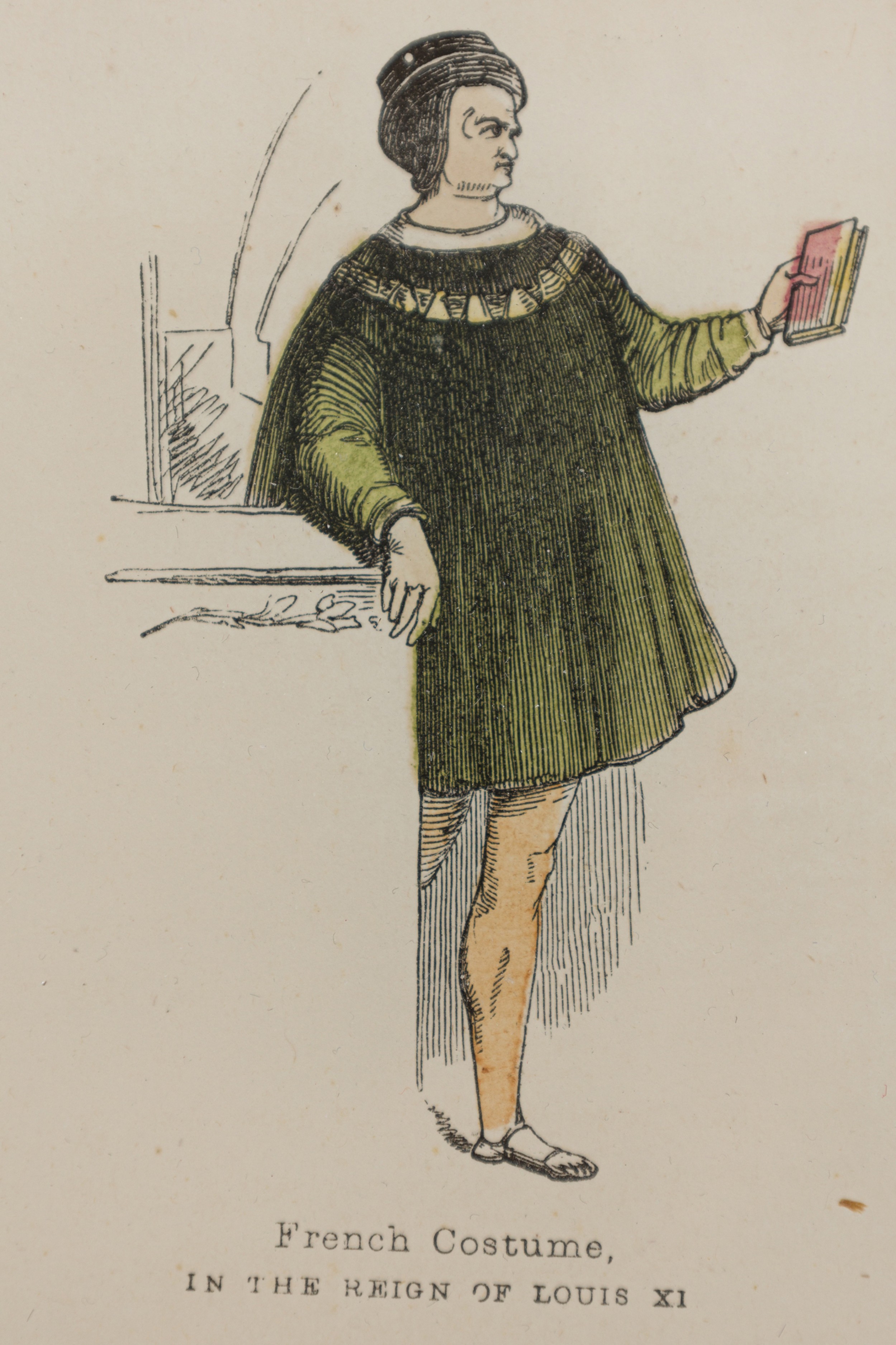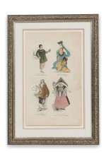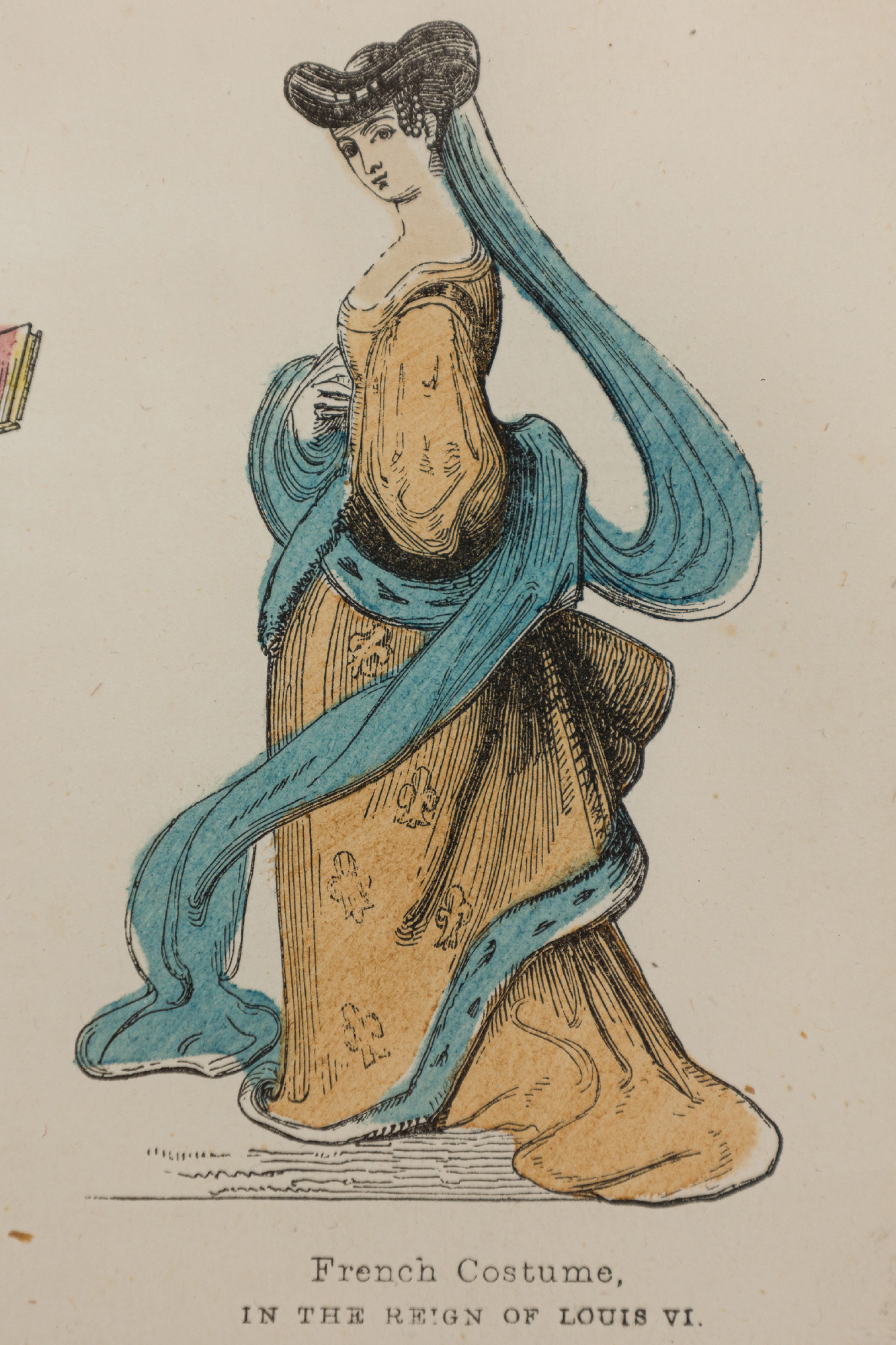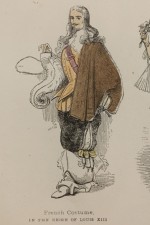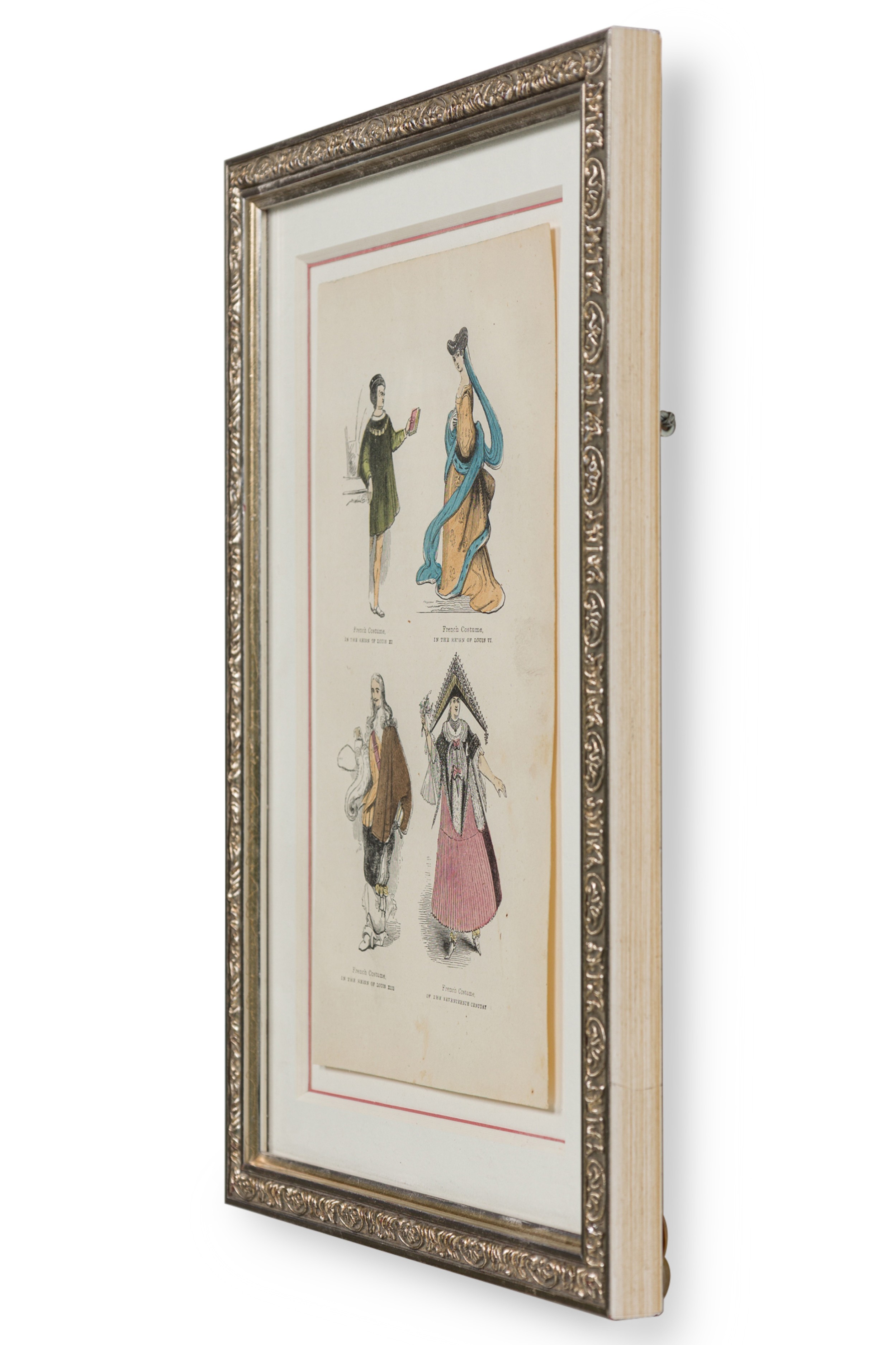 English Victorian prints featuring four styles of French noble attires from historical periods in a carved silver/gilt frame with a mat (Similar items: NWL6149A-F)