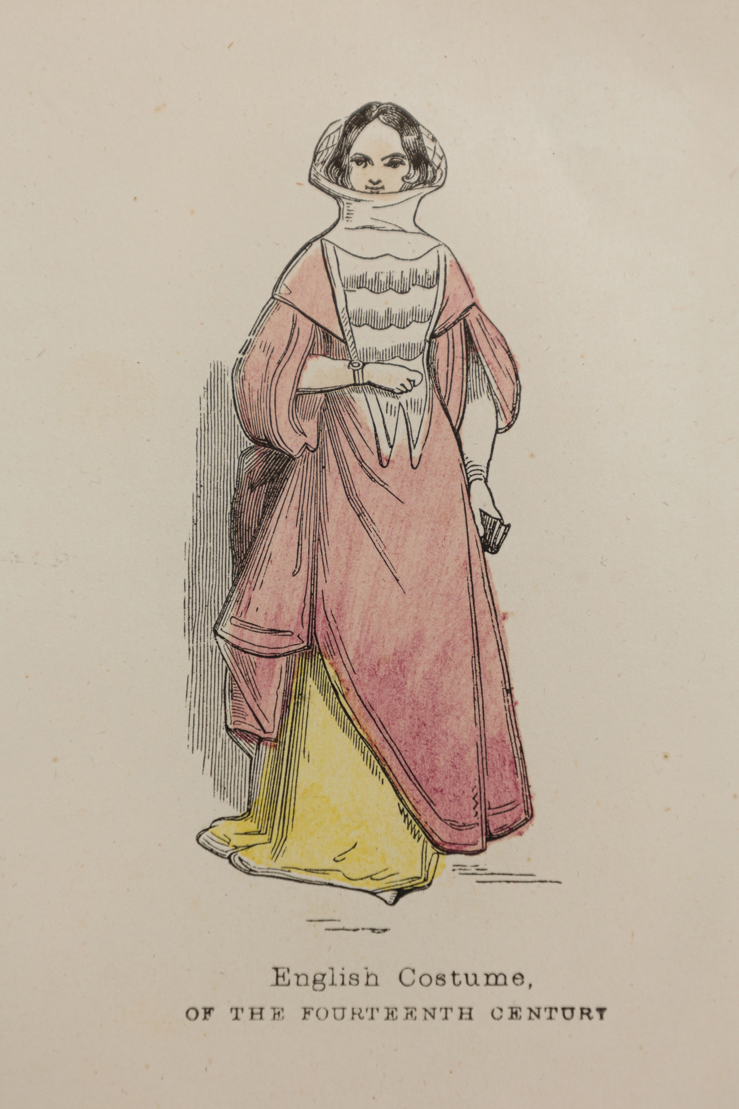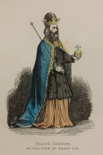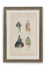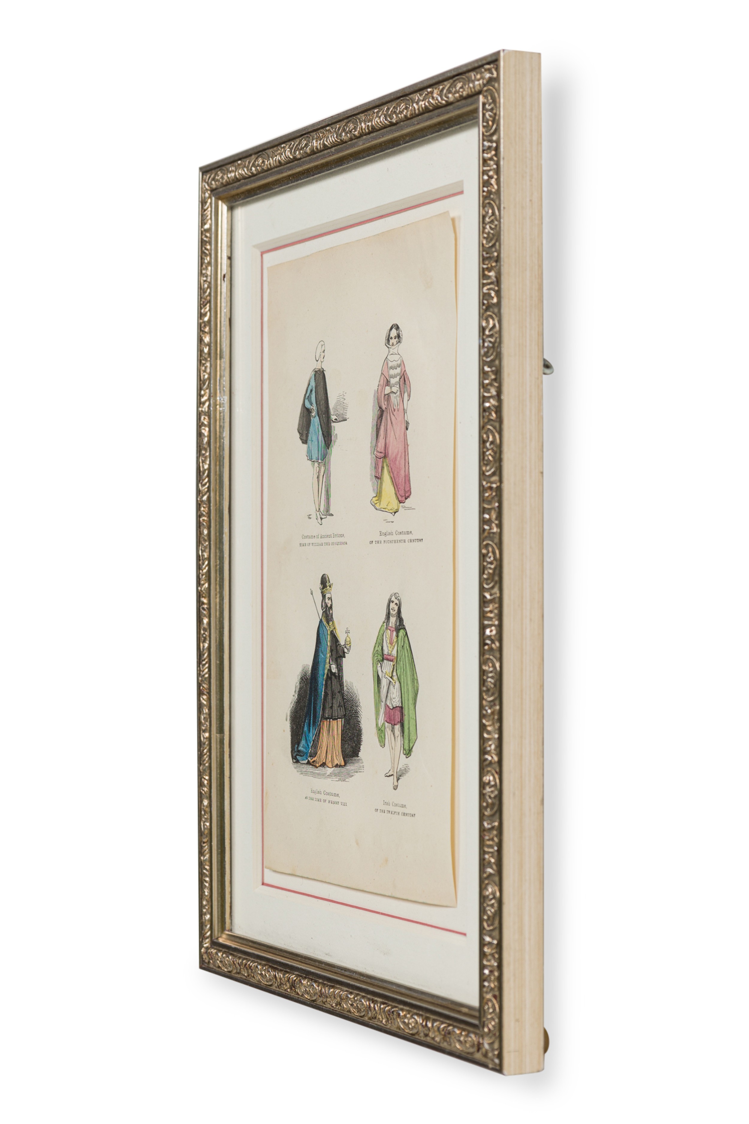English Victorian print featuring four styles of English noble attires from historical periods in a carved silver/gilt frame with a mat (Similar items: NWL6149A-F)