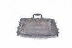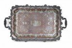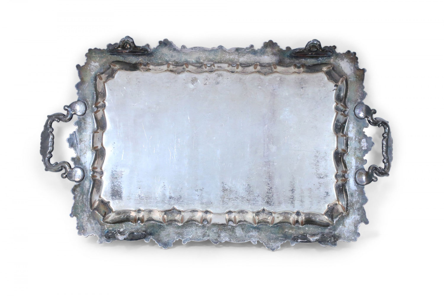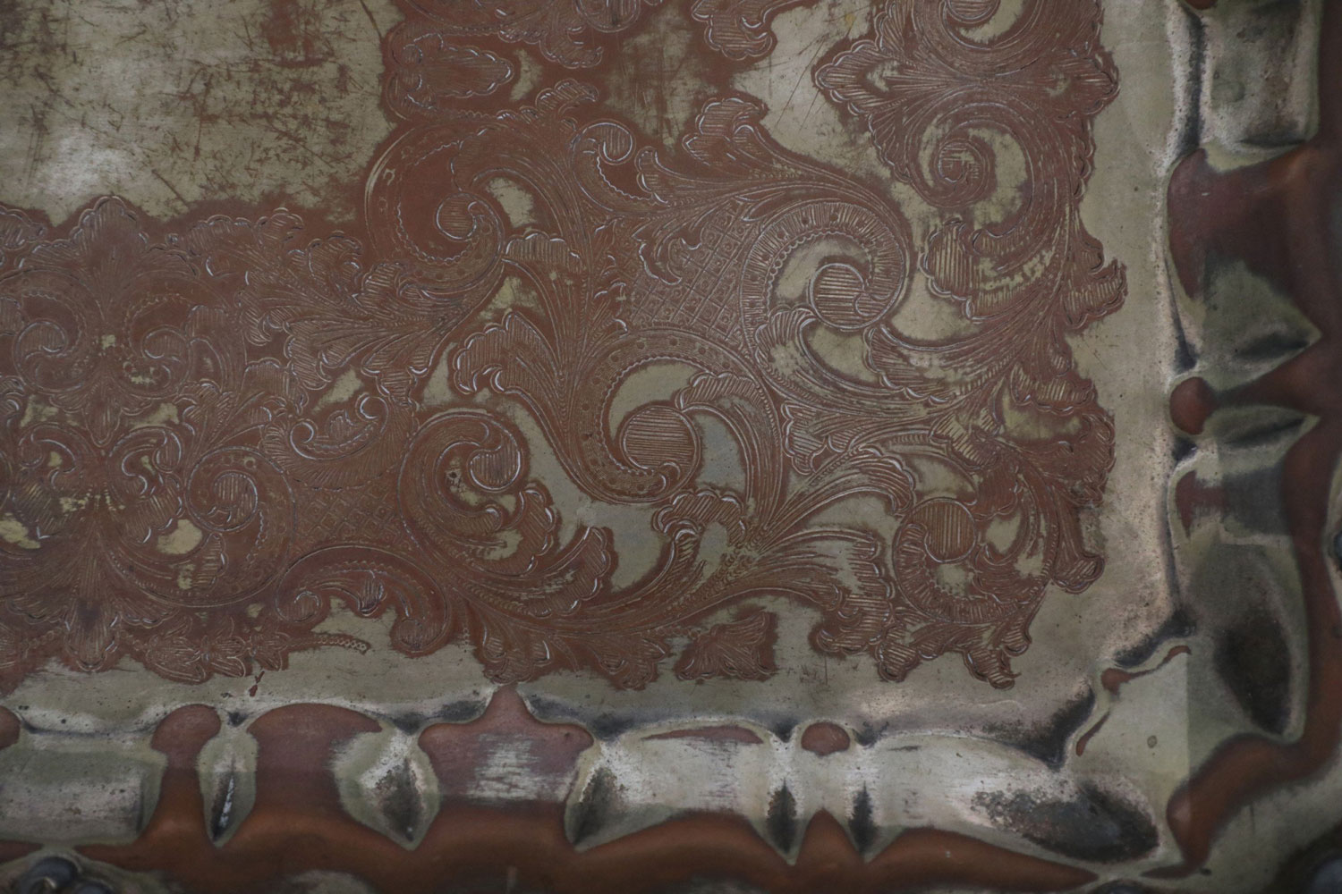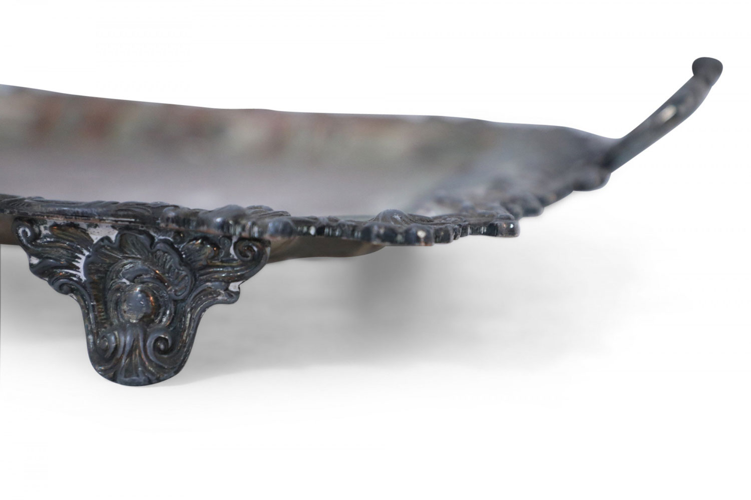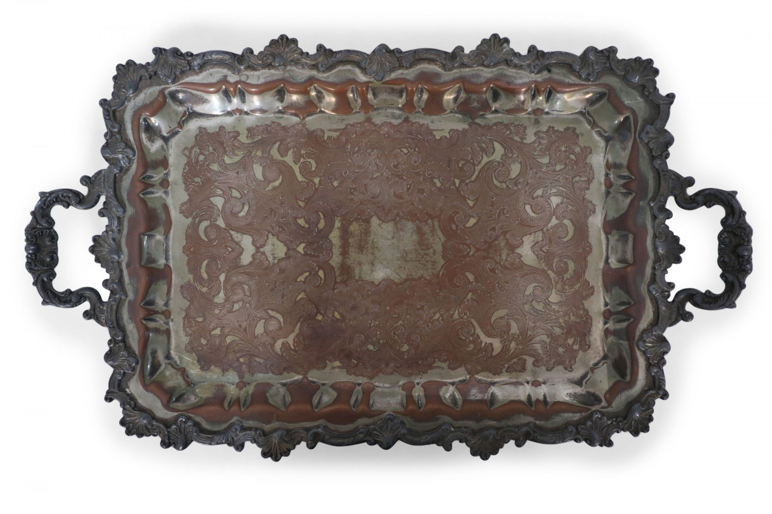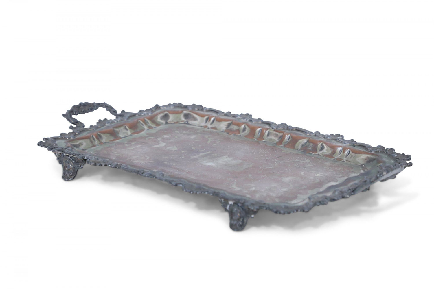 English Victorian Silver Plate and Patina Ornate Serving Tray