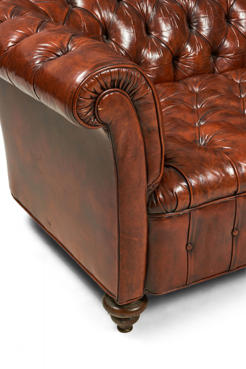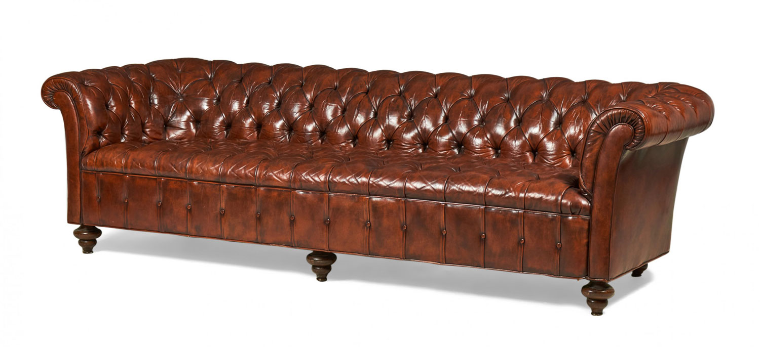 Style: English Materials & Techniques: Upholstered, wood, leather, tufted Category: Seating
