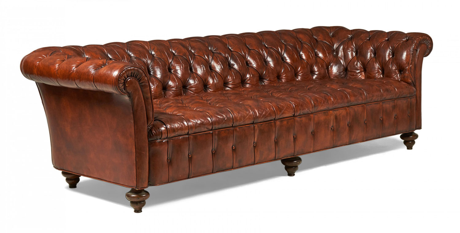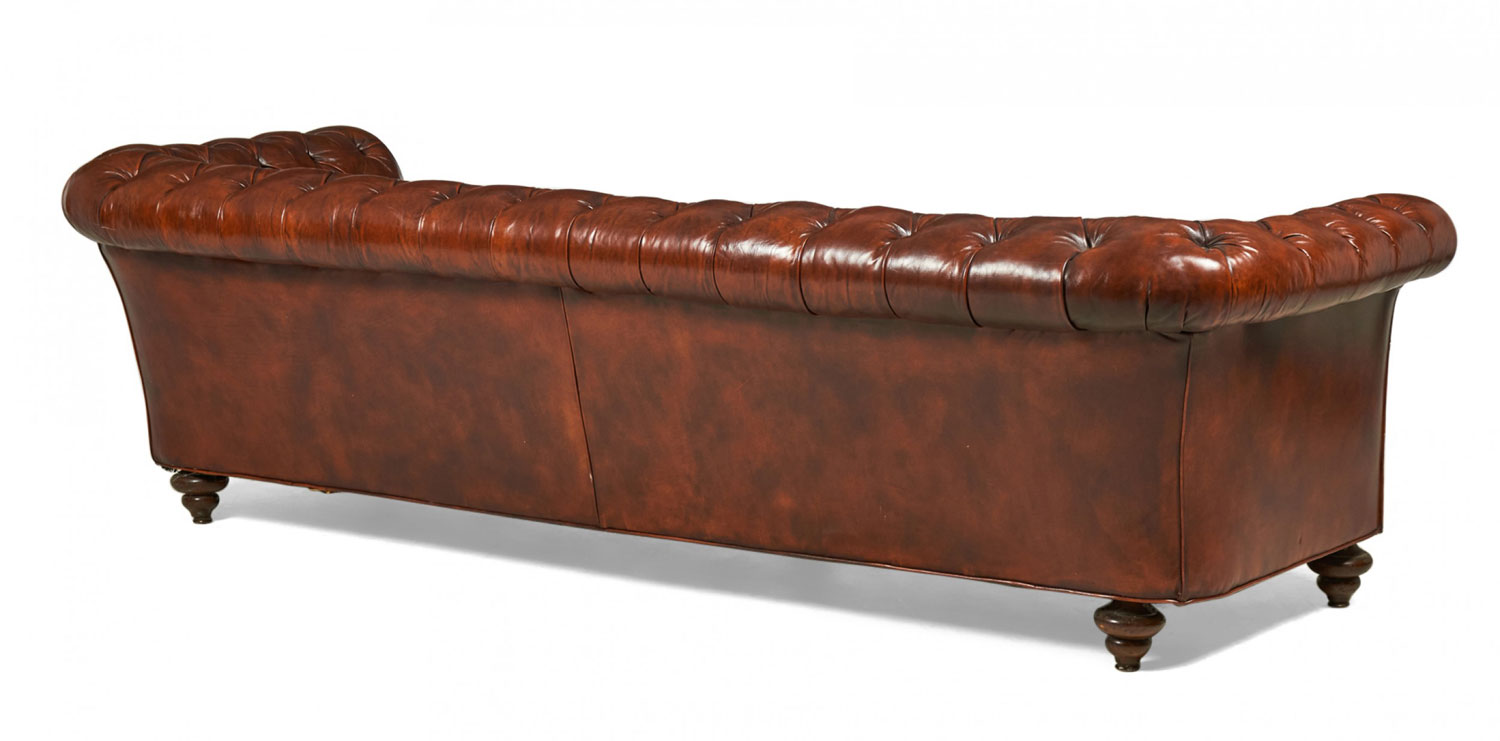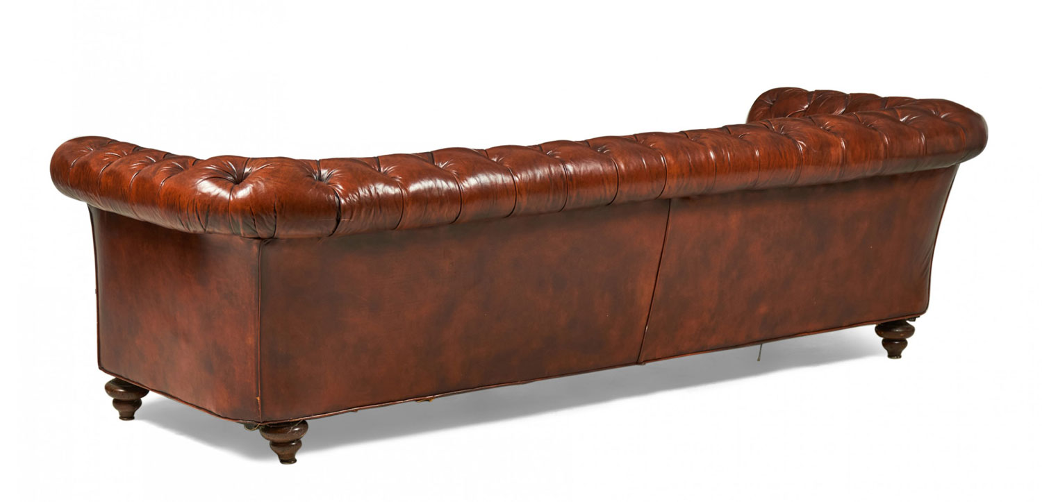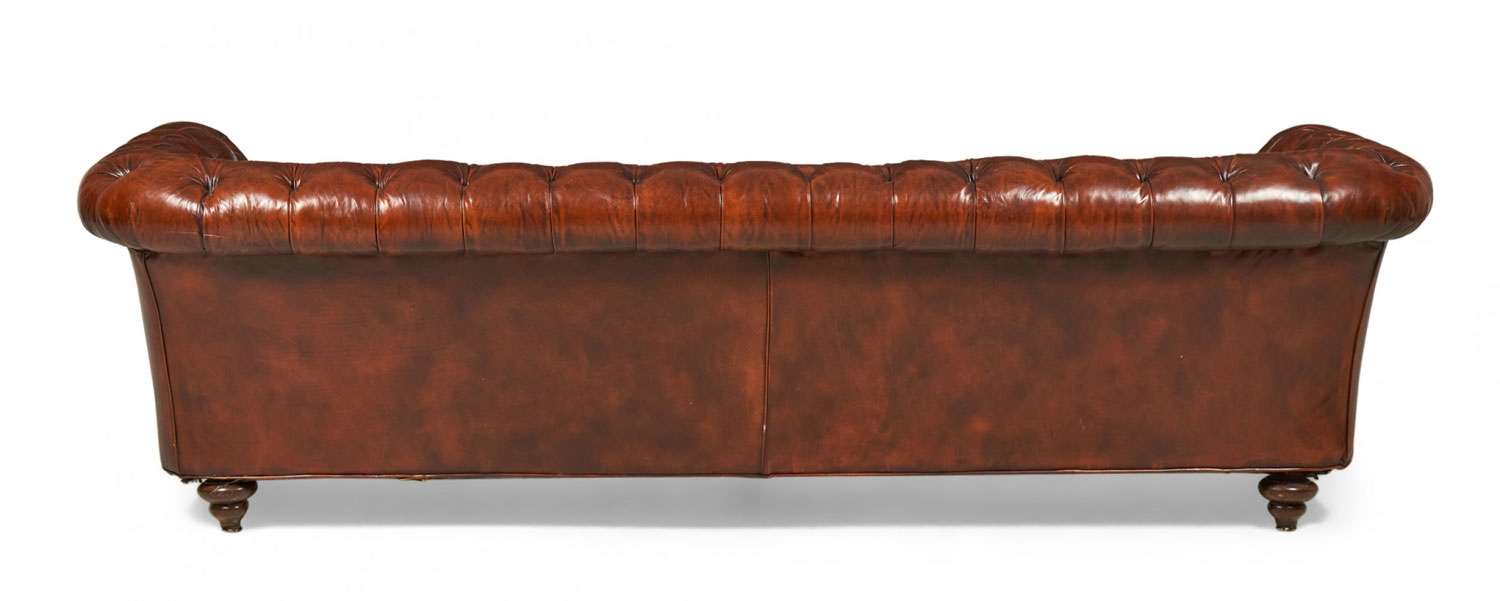 English Victorian Warm Brown Leather Tufted Chesterfield Sofa