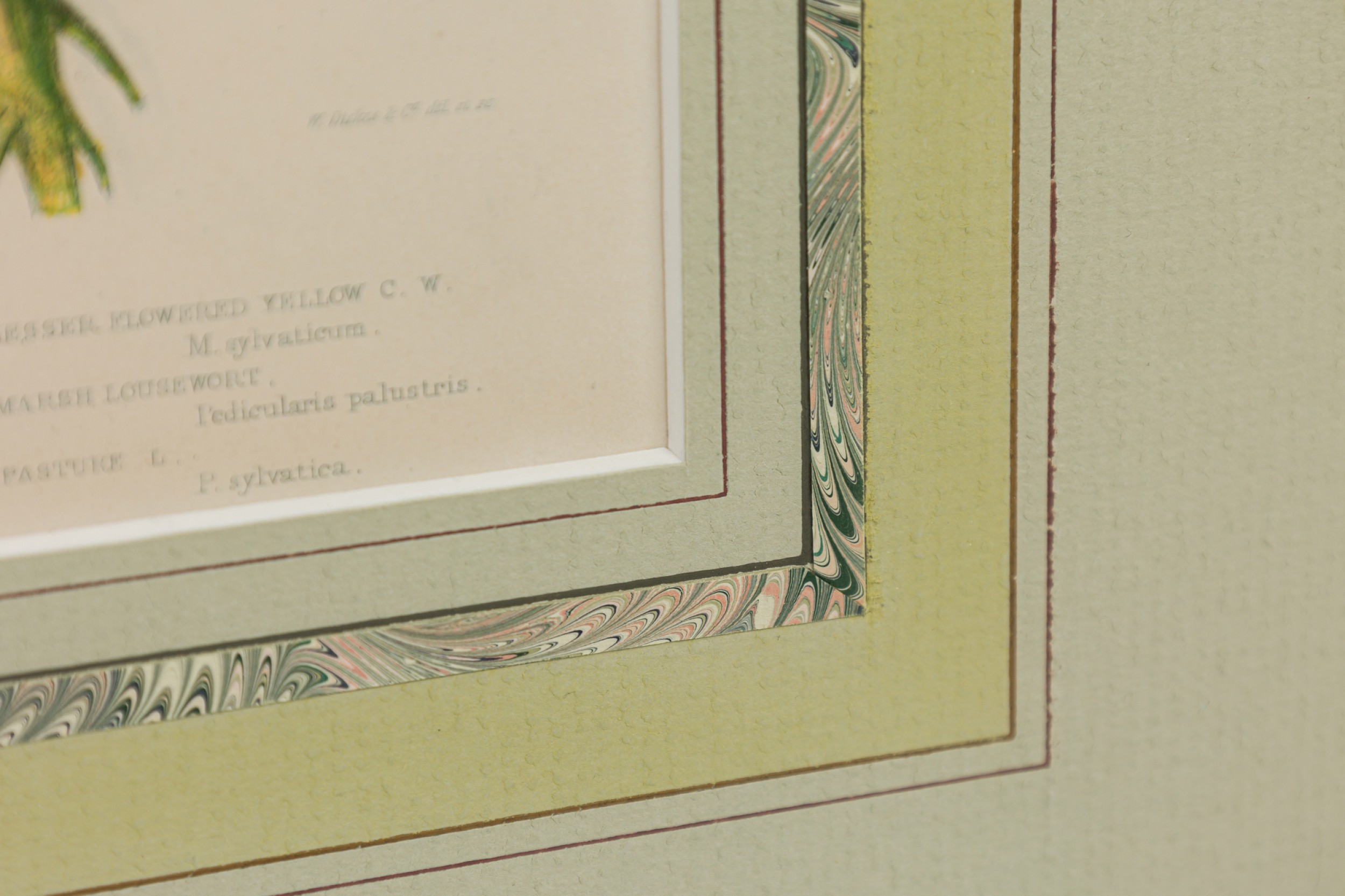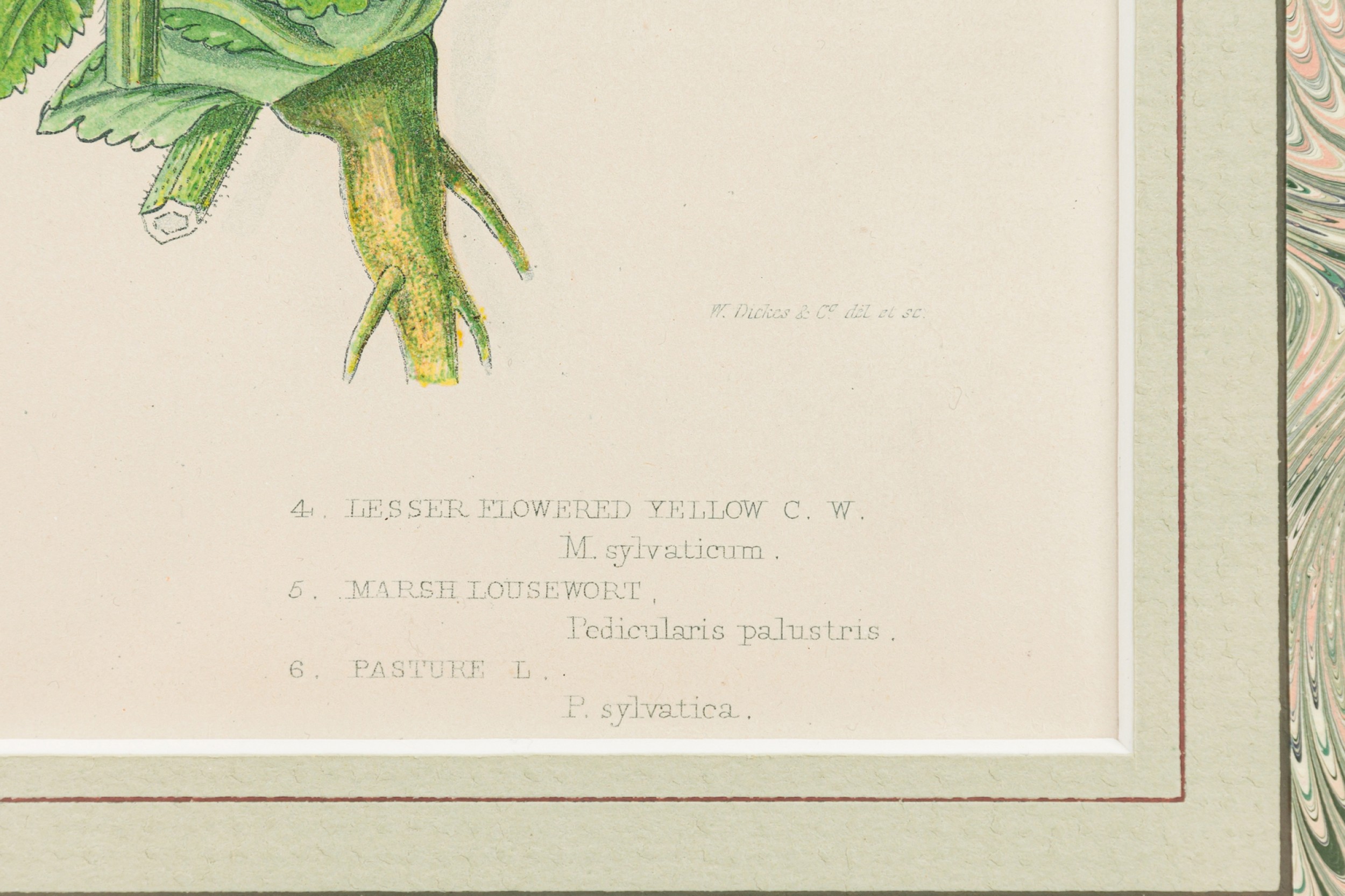 English Victorian Gold Framed and Matted Botanical Illustration of Crested Crowwheat with yellow and pink flowers (similar items: NWL7290, 7292, 7293)