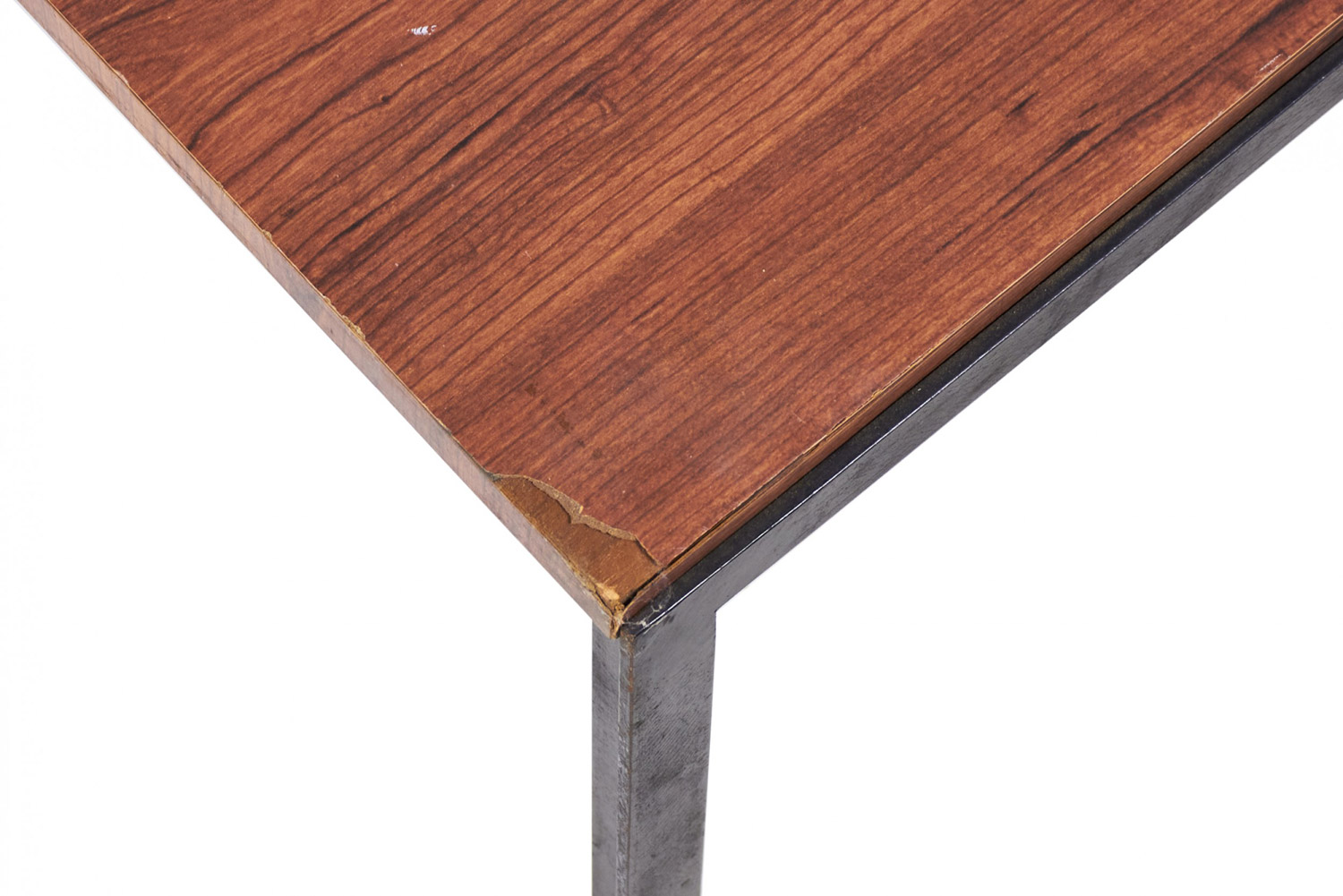 Style: Mid-Century Materials & Techniques: Metal, walnut, wood Category: Tables Condition: Wear to table surface. Good; Wear consistent with age and use