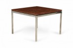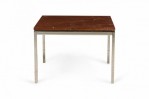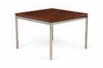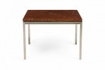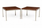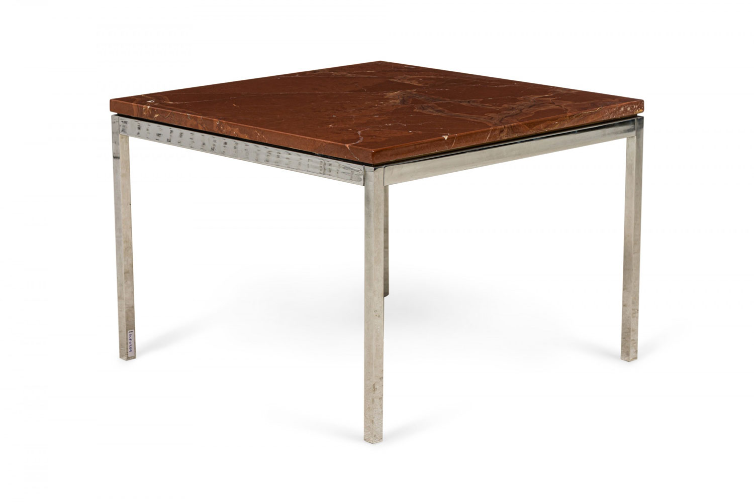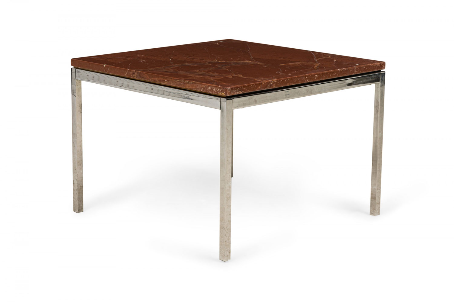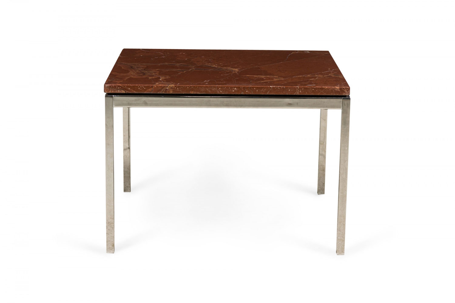 PAIR of American Mid-Century square end / side tables with brown marble tops resting on square steel bases with four square legs. (FLORENCE KNOLL FOR KNOLL INTERNATIONAL)(PRICED AS PAIR).