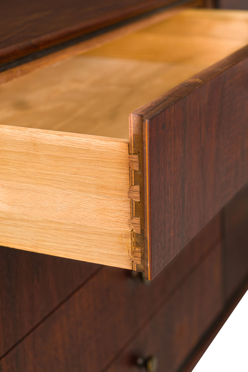 Style: Mid-Century Materials & Techniques: Teak, wood Category: Cabinets & Case Goods, Bedroom Good; Wear consistent with age and use
