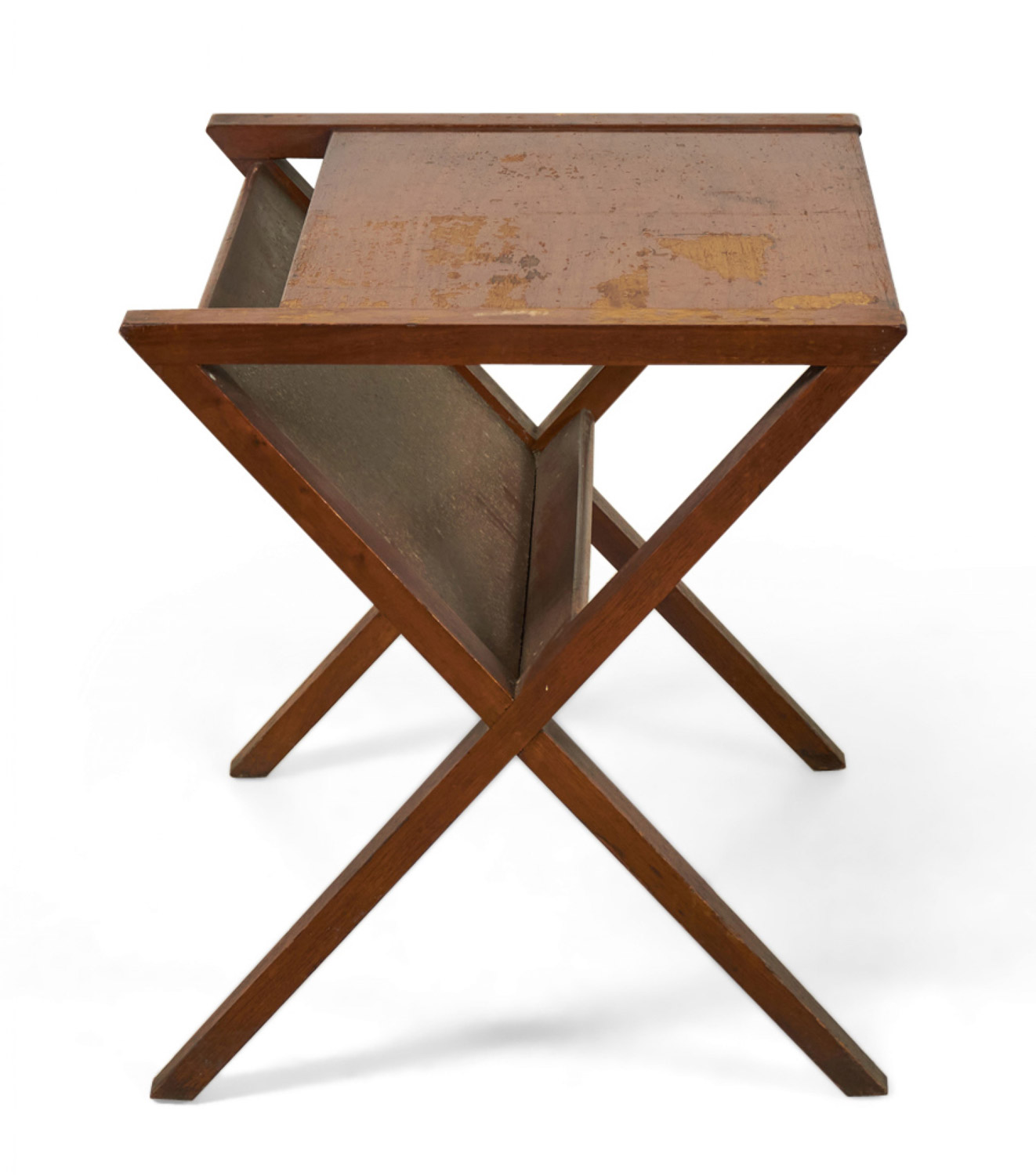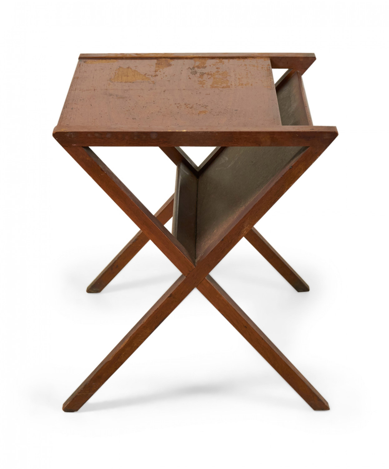 Founders Furniture Co. American Mid-Century Walnut X-Frame End / Side Table with Magazine Holder