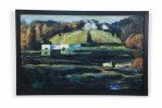 Framed Acrylic Landscape Painting of Lakeside Buildings in Autumn
