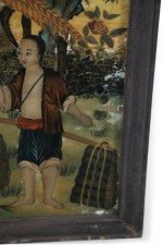 Framed Chinese Glass Back Painted Scene of a Family Gathering Fruit Beneath a Tree