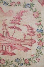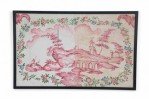 Framed Pink and Green Painted Panel Depicting a Chinese Landscape