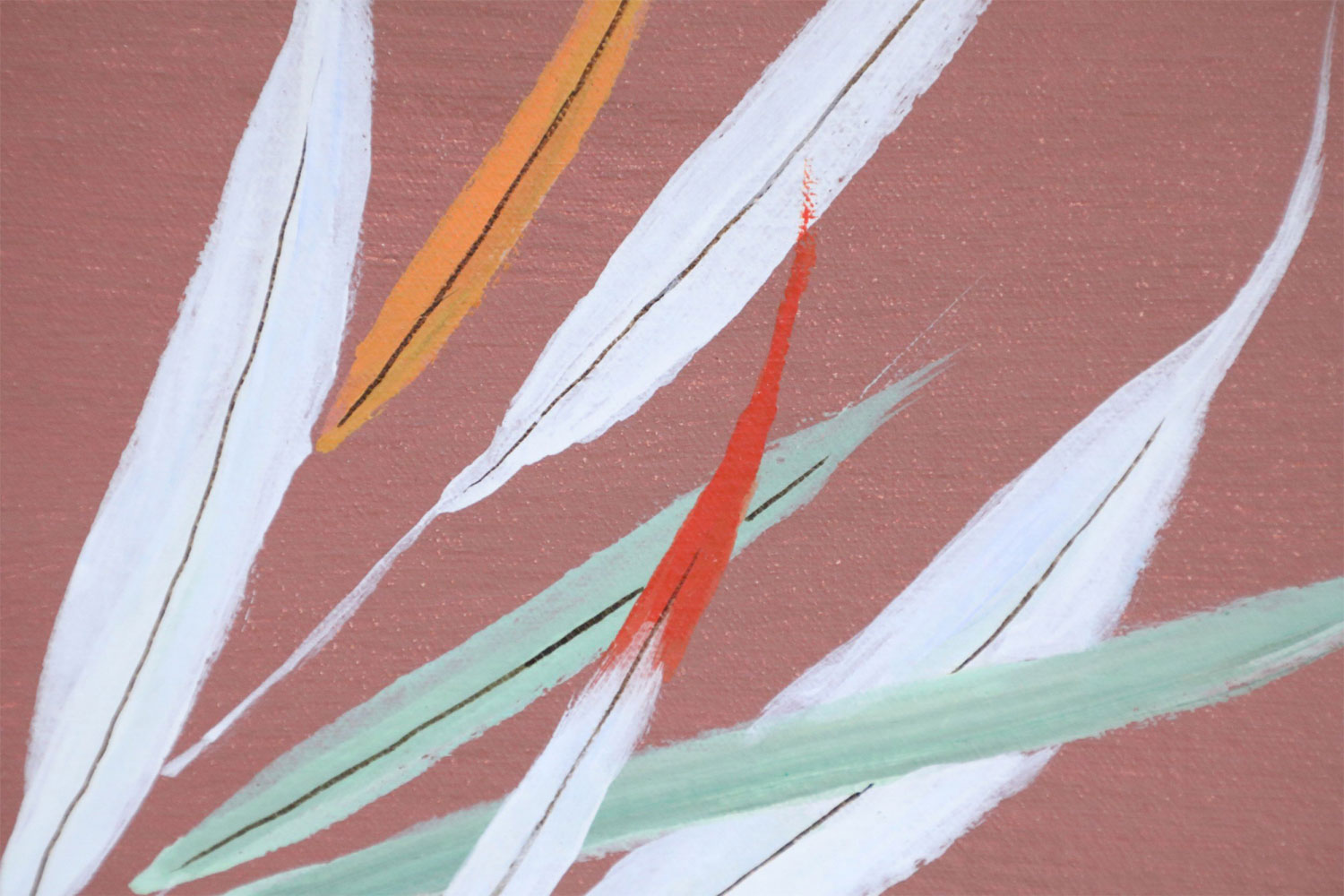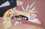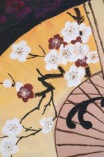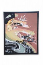 Framed Vintage Chinese Acylic Abstract Painting of Waves and Fans