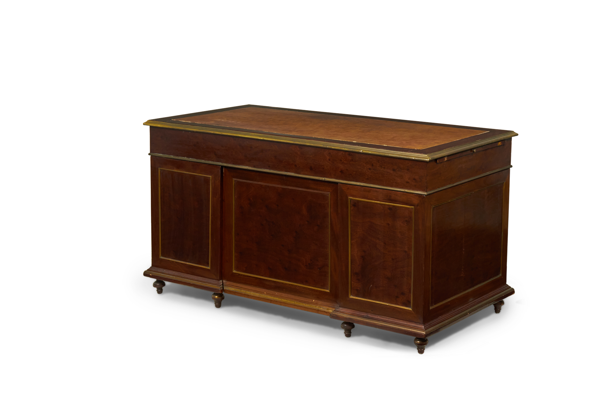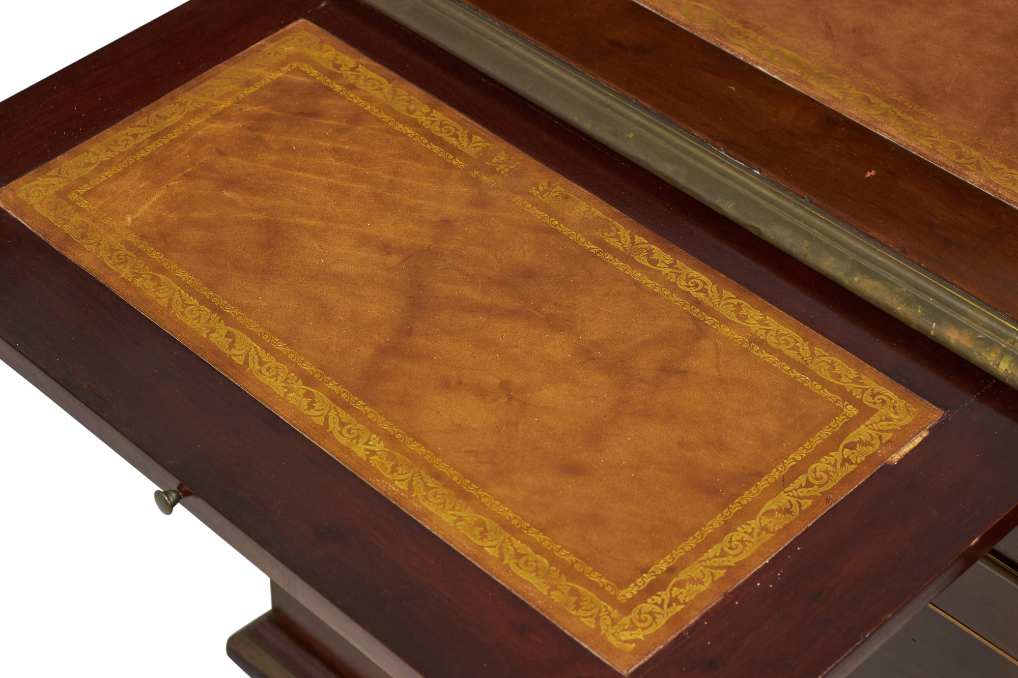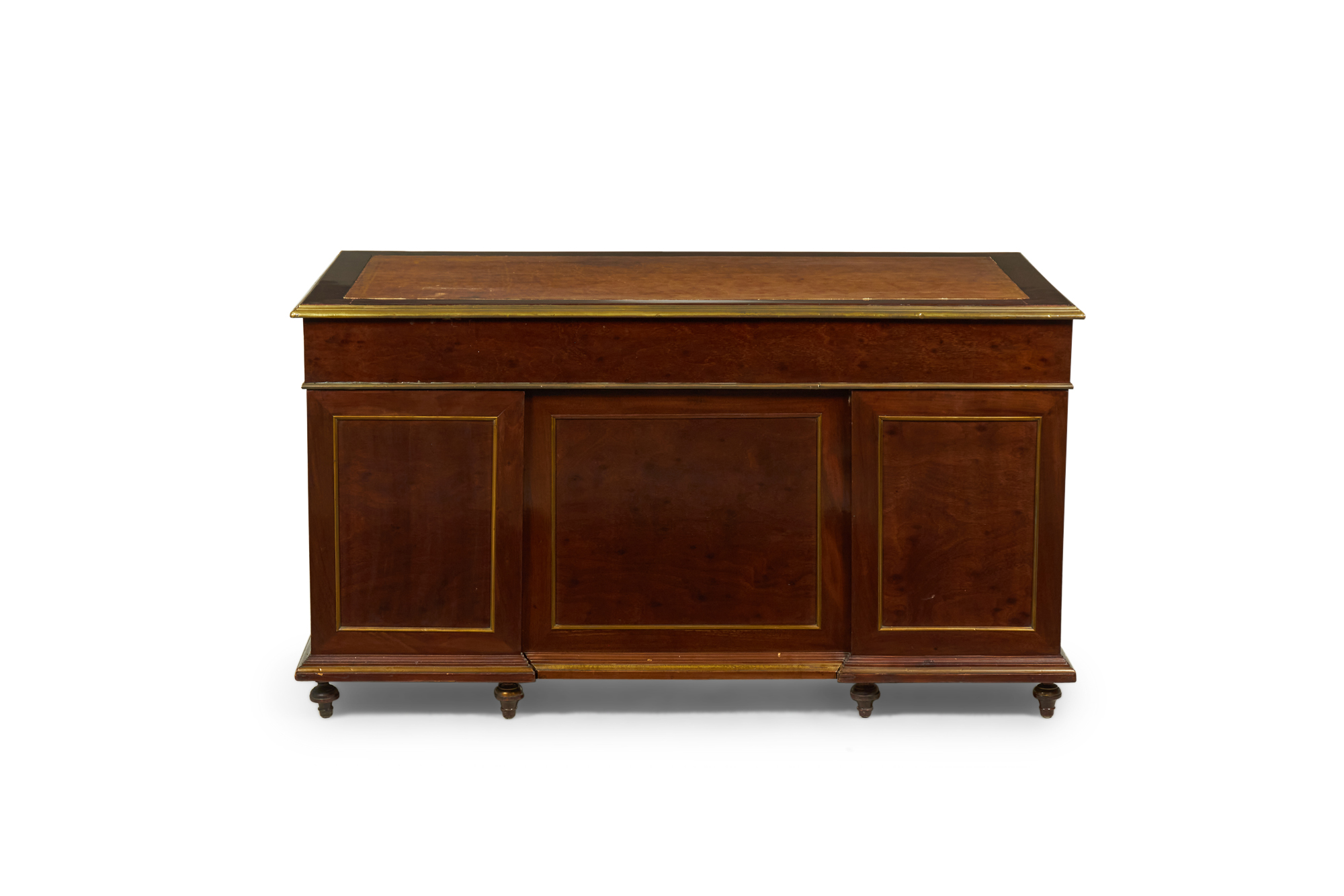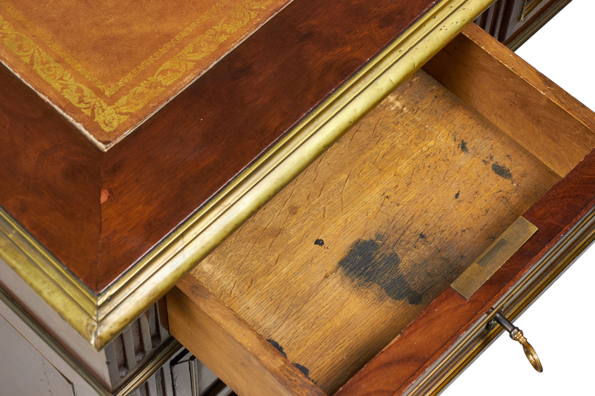 French Louis XVI Style Mahogany and Brass Kneehole Desk