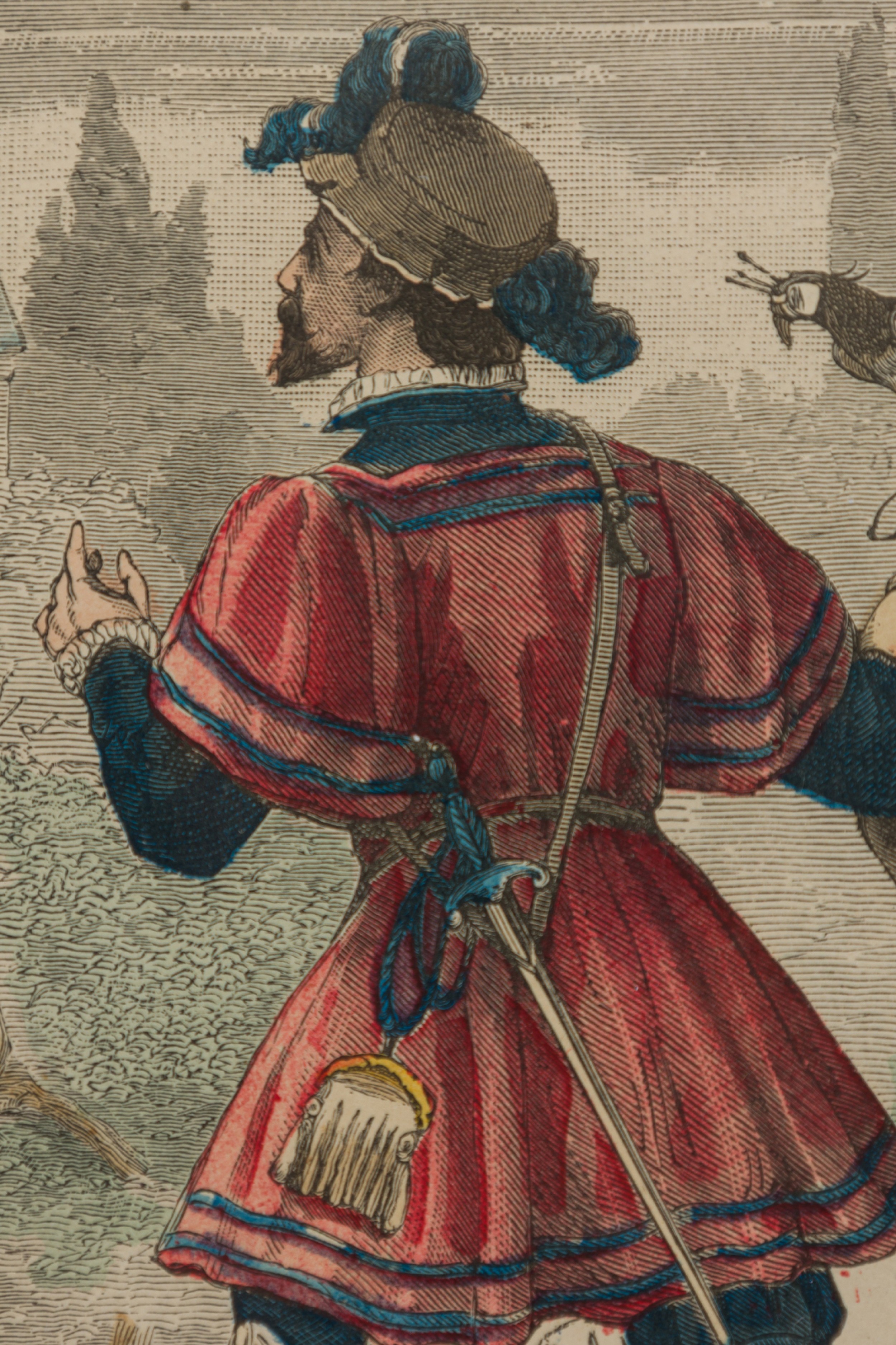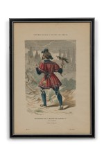 French 19th-Century Framed Lithograph of a Falconer of the House of François I in Renaissance Attire