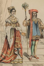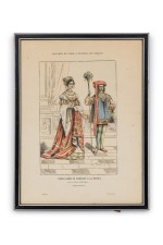 French 19th-Century Framed Lithograph of a Parisian Noble Lady in Renaissance Attire