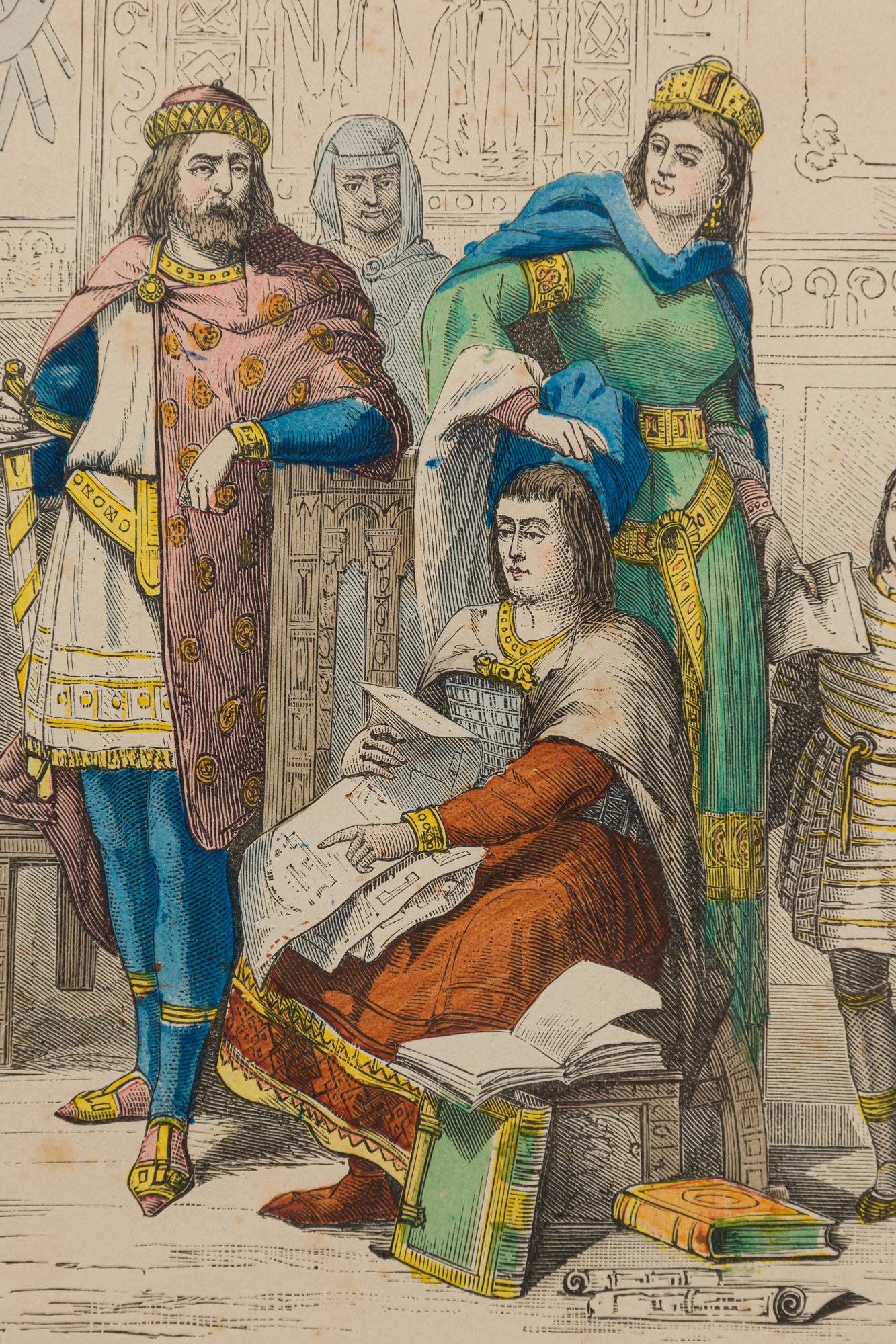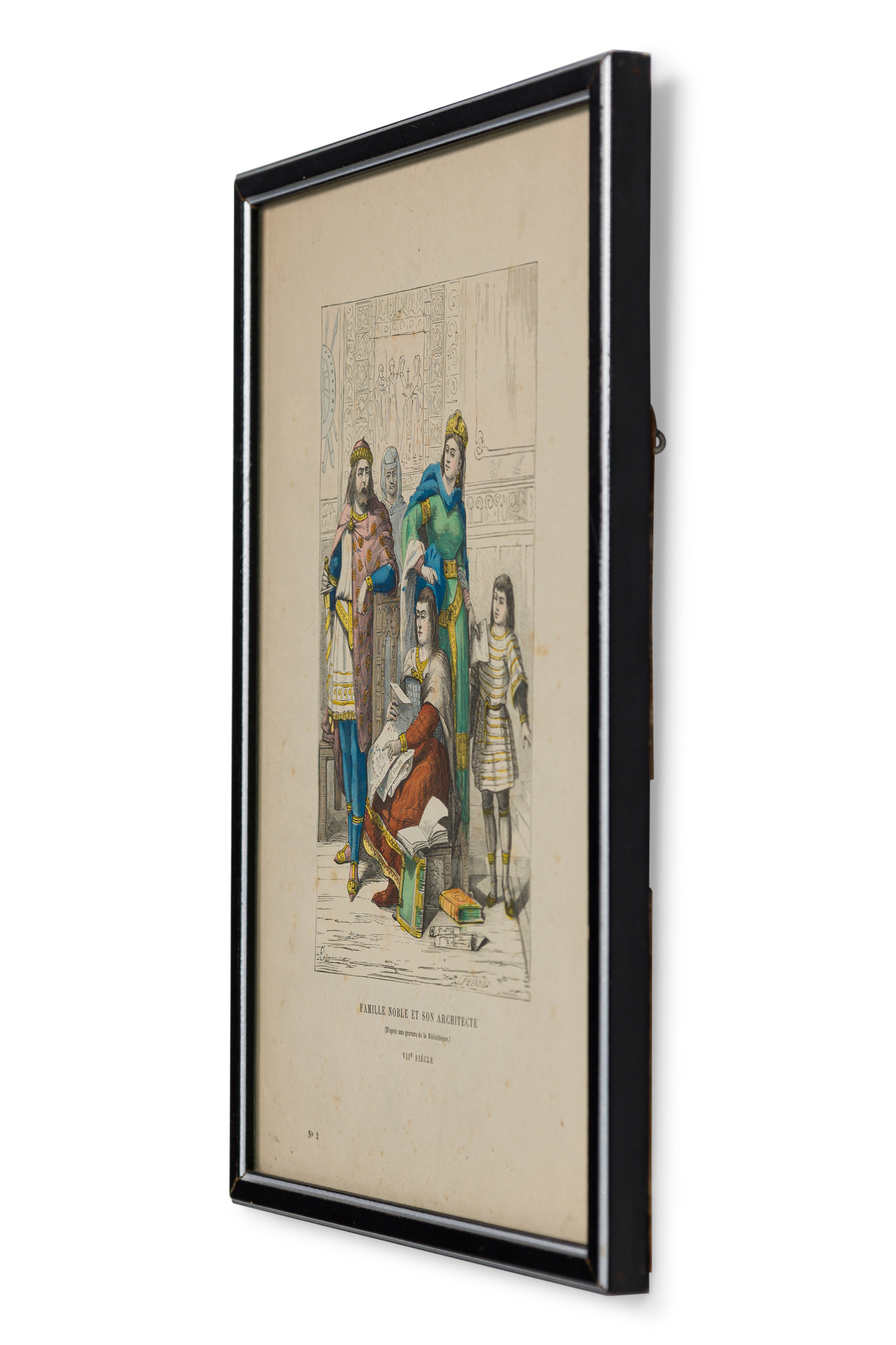 French 19th-Century Framed Lithograph of a Parisian Noble Family and their Architect in Byzantine Attire